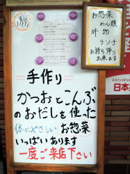 太子橋今市駅を5番出口で地上に出て、左へ3軒目の超便利なところ。レトロな看板・提灯・白暖簾をまとってスックと立った構えがよろしなぁ~。 店内は奥へと意外に広くて、テーブル6つか7つ。 ![]() (左)表の白板、好感度抜群! (右)店内きれいです 店のおばあちゃんが世話をやいてくれるが、このおばあちゃんが史上最強のホスピタリティの持ち主だ。あまりのやさしさに心がとろけそうになる。彼女を先頭に、店全体がとにかく「お客さん思い」の一語に尽きる。 感銘ポイントがありすぎるので箇条書きにしてみよ。 (1)席につくや、お茶とお水を両方出してくれる。水には氷も入っている。 (2)お昼のランチ(10:00~15:00)の値段が安く、組み合わせが良心的。「コロッケ・ハムエッグランチ」と「海老かつ・ハムエッグランチ」はどちらも540円、それぞれコロッケとエビカツが2つずつ。「レディースランチ」540円はコロッケとエビカツ一つずつで、あれこれ食べたいわがまま女子に対応。 (3)昼休憩30分前に入店したにもかかわらず、「時間は大丈夫ですからゆっくりしていってくださいね」とおばあちゃんニッコリの心遣い。 (4)「サラダにマヨネーズをかけてもよろし?」とおばあちゃんニッコリ聞きに来てくれる。 (5)外の看板に「かつおとこんぶのおだしを使った体にやさしいお惣菜いっぱいあります」とある通り、おかずケースがめっちゃ充実。目移りしちゃう。聞くと、朝3時から仕込みをしているとか! (6)しかも夜は21時まで。「体を休めるため月に一回は連休にしとります」って。おばあちゃん、無理せず元気でやっておくれよ~。 ![]() (左)すばらしきおかずケース (右)鳥ミンチ250円、丸々とした肉団子が4つ ![]() (左)ほうれんそうシラス250円、たっぷり! (右)そしてハンバーグ・ハムエッグランチ620円 一般的な食堂メニューも、うどん320円に始まって多種多様、全部安くてうまい。って全部食うてへんけど、そうに決まってる。 まったくもって食堂の鏡のようなお店だ。入店から退店まで感動ひきもきらず。 きれいに改装されているので激渋基準の★はつかないが、マトモな基準からすると満足度★★★★★の超優良食堂。近所の人は幸せね。 (2015年4月) |