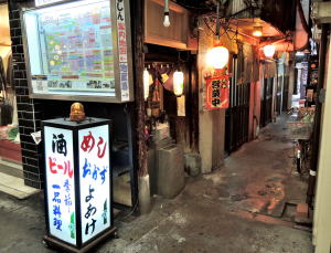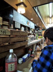 JR鶴橋駅から見てタテの通り3筋目、近鉄より北側。 アーケードの中にひときわ怪しいディープな路地があり、その入り口に電照箱看板が置かれている。 呑み屋なのか食堂なのか判然としないが、その中間的な店なのだろう。 ![]() (左)駅から3分 (右)路地に暖簾がかかっている ![]() (左)呑み屋のノリ (右)カウンターのみの薄べったい店 ガラガラっと開けると、午前11時、ほぼ満席でみな賑やかに呑んでいる。 カウンター内に50歳くらいの夫婦と、カウンターの手前におられるおとなしめのお婆さんとでやっているようだ。 そのお婆さんが席を作ってくださったので、カウンターのいちばん手前の端っこになんとか座った。 腹が減ってるので普通にメシが食いたいけど、カウンター内の上のほうにいっぱい書かれているメニューが遠くてイマイチわからん。 奥のほうのカウンター上に大皿が見えるが、これもよくわからん。店が狭くて見に行くこともできない。 目を凝らしてなんとか見ると、丼もんや麺類500円台~800円、汁物は種類多いが250~300円ほど。あとはいろいろ居酒屋的な一品ものが書かれている。 大衆食堂としては微妙に安くはないが、メニュー豊富で、気安く朝から飲み食いできる人気店という感じだ。 ホルモン炒めが売りきれとのことで、トンテキ750円と小めしを注文。 トンテキ750円しっかりボリュームがあって、デミグラスもなかなかよろし。俺も他客のように酒を頼んで一品ものをいろいろ試してみたかったが、この日はそういうわけにはいかなかった。 合計950円。ちゅーことはめし小200円、やはり呑み屋価格か。もっと安い定食ものもあったのかもしれんけど、なんせ見えん。 帰り際にお婆さんが丁寧に、 「ばたばたしてすんません、これにこりずにまた来てください」 と腰を曲げておっしゃった。 普段はもっと落ち着いてるんかな。まあこんな賑やかな店もよし。また寄ろう。 (2015年3月) |
