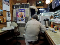 地下鉄千日前線の終点・南巽駅を出て、南巽の交差点を西へ3~4分歩いたとこでふいに現れる渋い大衆食堂。有名牛丼チェーンとは「家」と「屋」の違いがある。こっちは唯一無二だ。 暖簾をくぐって中に入ると、すぐ右手に大きなおかずケースがドーン。店内は奥に長く、客席は左右にカウンターのみ。 ![]() (左)おかずケースと表のベンチ (右)左右にカウンター、奥に厨房 60近いオヤジさんと母親らしきおばあさんの二人でやっているようだ。 壁メニューを見ると、うどん・そば280円~、コロッケ80円…全体的にみな安い。 豊富なおかずケースからハンバーグを取ってチンしてもらい、玉ねぎスライスもゲット。それと小めし160円、味噌汁80円で〆て640円なり~。 ハンバーグうんもぁ~入ってきたじじい客とおやじさんとの話によると、あさってから5日ほど休むらしい。じじい客はそれが不満そうだ。 「なんで5日も休むんや。わし飯どこで食うんや」 「近くに食うとこなんぼでもあるがな。回転ずしもあるがな」 「いやワシはこういう一膳飯屋がイッチャン好きなんや」 じじいはそのようにクダをまいている。俺も同感だ。回転ずしチェーンより全然好きやわ、なあジジイ。 (2015年4月) |