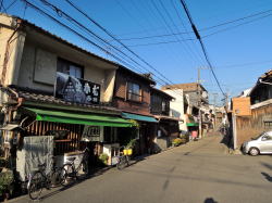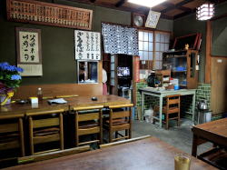 阪堺電車の聖天坂駅からすぐのところ。上町台地へ上がる坂の登り口あたりに、古めかしいたたずまいの小さな飲食店がある。 「生蕎麦」と古い書体で書かれた看板に合掌造りの絵が描かれているのが印象的だ。 狭い入口から入ると、中もミニサイズ。そしていにしえのカホリが漂っている。 誰もがホッとする空間とはこういう場所を言うのだろう。 ![]() (左)ザ・落ち着き (右)格天井 そば屋の看板だが、メニューにはうどん、丼物、中華そばが揃う。ほぼ400~500円台。天丼で700円、いちばん高い鍋焼きえび入りうどんが800円。 温和なばあさんが注文を聞きに来る。中華そば460円を所望。 奥の厨房でじいさんが作っているようだ。 ![]() (左)おかもちがたくさん並んでいる (右)中華そば460円、オーソドックスで安心の味わい ハフハフしながら聞けば、昭和2年からやってるそうで、戦争のときは向かいに焼夷弾が落ちたが、この店は無事だった。 ばあさんは店を出て左の台地のほうへ逃げたと言う。 戦後2回改築したが、骨組みは建った当時のままだそうだ。 大阪の街なかとは思えぬ静けさ。長く愛されてきた店、それを守ってきた人だけが醸し出せる味わい深いオーラが横溢している。 このまま聖天坂の歴史の生き証人として末永く続いてほしい。 (2015年5月) ![]() (左)もうしばらく休んでいこうか (右)坂はこの先で狭くなる |