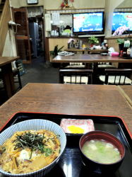 花園町から鶴見橋商店街をずーーっと歩いて、スーパー玉出をすぎたところに古風な食堂がある。 「つる食」とは予想通り、つるみばし食堂、の略だ。 大阪で2番目に長い商店街らしい中に入るとテーブル5つか6つだけの小さな店。 うどん・そば類、丼物、洋食、そして定食ものは幕の内というのが珍しい。寿司類もある。にぎり800円。 やわらかいお人柄のおばちゃんが注文を聞きに来てくれる。料理は奥でおっちゃんが作っている。 めったに食わへん木の葉丼500円でもいっとこか。 ![]() (左)中華そばがないのは珍しい (右)木の葉丼500円 だしのきいた木の葉丼、タケノコ入ってうまし。みそ汁、漬物もついて嬉しいな~。 狭いけど、落ち着ける。じつにエエ感じの食堂だ。また来ようっと。(2016年4月) |