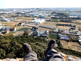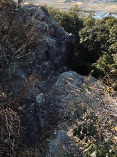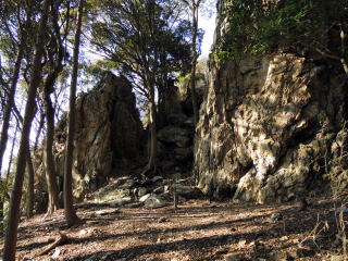 新幹線の大阪〜東京間に乗る場合、普通は座席指定の窓口で「富士山側を」と希望しますよね? 日本人である以上、当然の選択でしょう。 で富士山が見えてくるまでは仕方がないので、キオスクで買った週刊文春をめくり、あらかた読んだあたりでウトウトと居眠りへと移行する。 大阪から乗った場合、おそらくは名古屋を過ぎて豊橋あたりでそうなるはずです。 そこ! そこで居眠りへ移行せずに、もうちょい浜名湖の手前まで辛抱しましょうね。 下左地図の赤い印のところで、窓の外を見てみたら・・・。 ![]() (左)愛知県から静岡県へ入る寸前 (右)なんじゃありゃぁ〜? というわけで前から気になって仕方がなかったこの山。山というには小さいけど、岩がむき出しになって白く輝いているあいつは何なんだ。 南アルプスから続く山並みが海へ没する前の、最後のひと吠えといった小さな勢いを感じる。台湾の墾丁の大尖山を彷彿とさせやがるぜ。 正体を知るべくネットで調べてもイマイチわからん。国土地理院の地形図を見ても、名前も三角点も載っていない。ともかく行くしかないな・・・。 で、なぜか2013年の新年元旦。今年一年の運勢をこのふしぎ山で計ることにした。 ![]() (左)新所原駅の橋上通路から (右)神社の鳥居が見える。山頂の木が素敵 新所原駅は静岡県側にあるが、地図で見るとこの山はぎりぎり愛知県に属している。 駅を出て、幹線道路を愛知県側へ戻っていくと、すぐに県境の標識がある。そのまま歩くとやがてこの山が見えてくる。正面は絶壁だが後頭部(北面)からは登れそうだ。 途中にはコンビニもあって便利ね。 駅から1kmちょっとくらいで、真正面に来た。そこには小さなドライブインがあるが、その看板を見たら、「喫茶・食事 立岩」だとう!?・・・ということは、この山の名前は立岩か! そのへんの人をつかまえて名前を教えてもらおうと思っていたのだが、もう立岩で間違いないなこれは。 ![]() (左)喫茶・食事「立岩」だとぉ〜。ターゲットの名前判明! (右)美しいではないか 店の背後にまわると、山へまっすぐ向かっていく道がある。行ってみたけど、みかん畑で行き止まり。 右上はそこからの写真。青空に白い岩がじつに美しい。 正面の右側に神社の鳥居が見えていたので、今度はそっち側をさぐってみる。 ![]() (左)キャベツの国からこんにちは (右)神社から攻める 神社の手前に、下左のような看板があった。なるほど、ここはロッククライミングの練習場に使われてきたんだな。でも俺はべつに岩登りをしに来たんじゃないもんねー。 その横には小さな公園がある。 ![]() (左)岩登りの事故で自治体の責任を問うやつなどおらん (右)そしてこの脱力っぷり 神社は赤い屋根の稲荷社だが、右側から奥へと参道が続いていて、奥宮がある。 こういった顕著な岩山は、日本では必ず神体山として信仰対象になっている。でもお正月だというのに、ここは特別に祭られている様子がない。地元の信仰対象としてはあまり求心力を持たなくなっているのかな? 奥宮の右側から背後へ回り込んでいくと、すぐに岩場が現れた。 ![]() (左)奥宮 (右)その背後の岩場、「天地天神社旧跡地」とある 森を少しかき分けたら、まもなく立岩の岩壁が目の前にそびえてきたぞ。にわかに急傾斜となるが、岩の下部にテラス状のところがあり、そこまでは素手でも簡単に登れた。 そこからはロッククライミングの領域となるが、右のほうの大きなクラックに真新しい鎖が見えるではないか。岩もしっかりしていて、慎重にいけば素手でも登れないことはないように見える。 ![]() (左)いきなり来たぞ! (右)クラックに真新しい鎖が見える だが元日からいきなり無理することもないか。もし落ちたら近所の人にえらい迷惑をかけてしまうことになるし。 岩場を降り、岩の根に沿って右側から背後へまわることにする。 平坦な森を抜けて岩塊の北側へ出ると、畑地の柵に阻まれる。そのへんから登れなくもなさそうだが、けっこうヤブが茂っている。もう少しラクなルートを探そう。 休耕地っぽい段々畑を登って、立岩から北へ続く緩い尾根筋に出たところに踏み跡発見。なーんだ、反対側からアプローチルートがついていたのか。 ![]() (左)ルート発見 (右)森を抜けて露岩へ出た 踏み跡をたどって斜面を登るとやがて森が終わり、岩場に行き当たる。入山しないでください、と立て看板があるわりにはけっこう登られているようで、岩場も難なく上がっていける。 と、目の前に洞窟が現れて一瞬ギョッとさせられる。「防空壕に入らないでください」だと? ![]() (左)防空壕あと、2ヵ所ある (右)キタ━(゚∀゚)━! 防空壕跡のすぐ上が頂上だった。そのとたん、惜しみなく広がる大展望! ![]() 180度パノラマでは足りませぬ ![]() (左)ひょえ〜〜 (右)下から見えていた孤高の木は松の木かと思っていたけど、樫の木だった いやはや、お正月! 最高! ちょっと海まで距離があるけど、ずーっと広がるペッタンコはみな太平洋よね。 眼下に