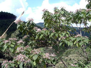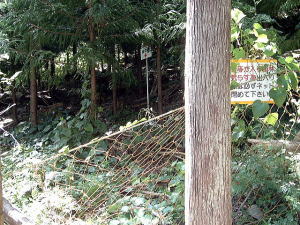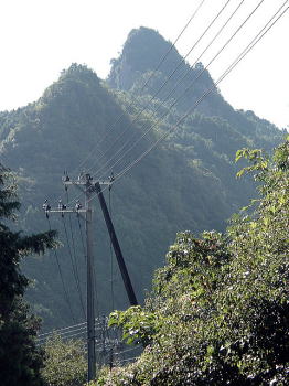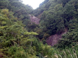 | 【敗退編です・・・】 「日本の桂林」とも言われる古座川峡。そのシンボル・一枚岩の向かいで、ちょっとブキミに聳える山。上ノ峰と下ノ峰からなる。標高は低いが、その峻険な地形はナメてかかった人を陥れる。 そのナメてかかって登頂を拒まれた愚か者、俺だ。ははは。俺のような目に遭う人が今後出ないことを願い、恥を忍んで報告したい。(半年後の登頂編はこちら) 青春18きっぷで約6時間、本州最南端を回ってやっとこさ古座駅着。30分ほど待つとバスが来るが、このふるさとバスは一日2本しかないから、狙いすまして行動する必要がある。 しかも、帰りのバスは2時間後。それをのがしたら帰れない。 つまり、登って下りるまでのタイムリミットは2時間。過去に登った人の記録を見ると、山頂での休憩を入れてもおおむね2時間半そこそこで下山しているようだから、急げばなんとか間に合うだろう。 これが最初の落とし穴だった。 ![]() (左)一枚岩、高さ100m (右)トンネル横の登山口付近から見た嶽ノ森山。近すぎて山容がわからない 美しい渓谷を走るバスに揺られて約30分、一枚岩の少し手前の国道相瀬橋近くに、新しく整備されたらしい登山口がある。ここから登れば確実に2時間以内で戻って来れそうだ。 でも、もう少し上流の一枚岩トンネル近くに古い登山口があり、そっちから登るほうがナメトコ谷なんかがあって面白そう。せっかくだから、そっちから登ることにしよう。 これが第二の落とし穴だった。 ![]() (左)じつは「注文の多い遊歩道」だった (右)鹿よけネットの向こうに小さな道標発見 1kmほど上流へ歩いて一枚岩トンネル右の道に入ると、工事現場のようなところに登山口を示す看板あり。「遊歩道入口」とある。事前の調べ通り。 「遊歩道」です。超楽勝決定。だから今回は地形図を持って来なかった。当然だろ? これが第三の落とし穴だった。 「遊歩道入口」を進むと、すぐに道がなくなる。「おや〜?」と思いつつもススキをかきわけて踏みあとを探し、植林帯へ入ると、黄色い鹿よけネットが行く手を遮る。よく見たらその向こうに「←嶽ノ森」という看板が出ている。 ホッとしてネットをくぐり、踏み跡をたどるが、完全に廃道状態。このあたりは屋久島と並ぶ日本有数の多雨地域なので、整備を怠るとすぐに道はなくなるのだな。 まあ入口であの荒れようだったから、この程度の荒れ方は仕方ない・・・って、あれ〜? 踏み跡はあるけど、これ、どう考えても登山道ではありません。なんかしらんが俺、四つんばい。普通ならここで引き返すわけだが、時間もないし、多少道を外れてようがこの沢を辿ればいずれナメトコに至るんだろ、行ってやれ。 年甲斐もなく突撃沢を詰めヤブをかけわけて登れど、ついにナメトコは現われないまま源頭部へ。現在地はどこだ〜地図がほしいよう。 とりあえず尾根に出よう、踏み分けくらいはあるだろう。 しかしイバラと岩に阻まれ、尾根の下でついに進退きわまった。半袖Tシャツで登っていたため、腕はイバラで傷だらけ。首にかけていたタオルもどこかに消えている。 このところピクニック的な楽勝の山ばかり歩いてたからな。判断力が完全に鈍っていた。イバラに全身を包まれて身動き取れない棒立ち状態で、とりあえずお茶を飲む。 ここから今来たイバラ道を戻ることを考えるとウンザリするなぁ。 進退きわまりポイントでいちおう記念写真でもこんなこともあろうかと・・・イバラに気をつけながら、そーっとリュックから生協の雨ガッパと軍手を取り出す。フードもかぶって完全武装。ははは、もっと早くこうしとけよ。 一気に気持ちが大きくなってガンガン下る。愛しのタオルちゃんも回収。 キミがいないと銭湯で困るのよほとんど登山口近くまで下ったとき、谷から南側斜面を急登する踏み跡発見。 試しに登ってみると、こいつが現われた。 今ごろナンダこのとき俺は思い出した。事前の調べでは、ナメトコへは、登山口からトンネルの上の尾根を越えて隣の谷へ入るのだった。あまりのルートの荒れように気をとられ、そのことを忘れていたよ。ははは。まあ地図がありゃそんなの間違えようもないんだが。 でももう1時間も費やしてしまったので登頂はあきらめ、スゴスゴ下山する。 ![]() (左)魔の分岐点、ここに看板があれば・・・。右下から登ってきたら直進せず、鋭角に左折すべし (右)登山口に戻って観察したら、隣の谷にナメトコの岩場(上部)が見えていた それにしても炎天下の雨ガッパというのはサウナスーツ状態だ。バケツの水をかぶったみたいにズブ濡れになった。 その直後、10分間ほど猛烈な夕立が来た。ヤブの中で遭遇してたらヤバかったかも。 時間が余ったので、そのへんをのんびり歩いて山の写真を撮ったりしながらバスを待つ。猛烈に悔しいので、時期を改めて再度同じルートから登ることを固く決意した。 (05.8.20) 新登山口にある看板。よい子はこっちから登りましょう ![]() (左)この看板は一刻も早く