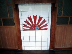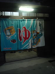 JR高田駅から南へ800mほど、近鉄南大阪線高田市駅からなら北東へ500mくらい。国道166号に面している。 屋号に恥じぬ重厚な外観。暖簾をくぐると下足室、木の下駄箱は木札を抜くと上に鍵が上がる旧式のもの。 戸を開けると・・・おいおい、番台が低くて女湯の脱衣場が丸見えでっせ。だが番台のおばちゃんは気にもせずに、高そうな液晶テレビを見ている。 脱衣場にはデデーンと木のロッカー、しかも明るい色のヒノキ一枚板に漢数字が掘り込まれている。天井は格子状で、番台や男女仕切り壁などの木も渋い。 浴室には中央やや右寄りにタイル張りの深浅浴槽。奥には「気泡風呂」と書かれた副浴槽があるが気泡は出ていない。 浴槽フチには珍しく黒いタイルが使われているが、これがひび割れたりしていて、かなりキてる感じ。湯は熱め、44度くらいか。 正面の壁上部に男女ぶち抜きで描かれているモザイクタイル絵は、桜の季節の奈良公園かな。なかなかよろしい。 でも経営のモチベーションはやや低そうな・・・大丈夫かな? (2004.4.10) ジス・イズ・ジャペーン |