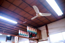 葛城古道を歩いて足くたくた。やっとたどりついた旧市街地の静かなまちなかにたたずむ銭湯。JR御所駅から南へ徒歩5分ほど。 渋い千鳥破風の平屋建てだが、暖簾をくぐると下駄箱などは新しいものに換えられている。 ![]() 昭和初期のクラシックな造り 戸を開けたら番台におばちゃんが座る。古い木のものだが外側はベニヤが張られている。 脱衣所は格天井がけっこうな高さで気持ちいい。木のプロペラが男女一つずつぶら下がっている。だが壁はベニヤで改装、ロッカーも合板モノ。 前栽部分は脱衣所を広げてマッサージ機を2台設置してあるが、ここの窓が開けっ放しで、表の通りから俺の尻が丸見えだ。開放的ですわ。 古い建物に逐次手を入れてあり、その経営努力は素晴らしい。でも、いにしえファンとしては残念・・・という皮肉なねじれ現象。 おっ、浴室の出入り口の横が山水画のエッチングガラスになっている。いいねえ、僕はこれが大好き。 浴室内部も改装済み。天井はカマボコ型だが、湯気抜きがない。改装で取っ払ったのか? 奥壁のタイルには白樺の絵が入っているが、これは既製品だな。 湯舟は男女隔壁に沿って大きな深浅主浴槽、浅いほうはジェット2連。やや熱めの湯が、くたびれた足腰にまことに気持ちよろしい。手前には電気風呂もあり、ちょうどいいぐらいの電撃。フクラハギと腰を徹底的に癒しまくる。 湯舟のフチには青竹風タイル、外側座り段やカランまわりなどには小さめ正方形の柄入り青タイルが張られている。いずれも初めて見るタイプだがじつに僕好み。でも湯のカルシウム成分なのか、水際部分に白いものがかなりこびりついている。 一見新しそうだが、後で聞くと改装後20年ほど経っているとのこと。毎日磨いておられるのだろう。 田舎の古銭湯らしくシャワーは弱めで、湯温安定せず。 宵の7時前、お客は僕を含めて3名ほどだった。 上がりは飲み物いろいろあり。 おばちゃんは神戸の灘出身とのことで、しばし神戸の話題に花が咲く。 細部は改装されているが、昔ながらの雰囲気がぼよよーんと漂う、のんびりくつろげる銭湯だ。 ちなみに、ここから東へ5分ほど歩いたところに葛城湯という激渋銭湯があるのだが、行ってみたら「しばらく休業します」との張り紙があった。宝湯のおかみさんに聞くと、この3月末に廃業されたとのこと。狂おしく残念だ。 (2005.5.21)→御所旅行記 廃業した葛城湯 |