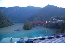 近鉄大和八木駅から日本最長の新宮行き路線バス(奈良交通)で4時間。十津川温泉は紀伊半島中央部の山奥のダム湖のほとりに湧く高温泉だ。 十津川温泉バス停の真向かいには「庵の湯」がある。新宮方面へ橋を渡ったところには「憩の湯」がある。十津川村は「掛け流し宣言」の村であり、それらの温泉施設も悪くない。 が、あえて無視して7〜8分歩くと、国道沿いのダム湖側に廃業旅館みたいな建物が見えてくる。 ![]() (左)ダム湖の色が青いのは温泉成分のせい? (右)右端の電柱の左に見える白い建物(の隣) その建物の陰に隠れるように、小さな小屋がつながっている。これだ! ![]() (左)質素そのもの (右)この看板がたまらない 十津川村に数ある温泉浴場でもダントツの素朴さ、小ささ。当サイトとしてはもうここしかおまへん。 去年あたりまでは他の温泉施設と同様に朝10時から夜9時まで営業していたらしいが、今年からは夕方から3時間半だけになった。上りの最終バスは15:59だから、ここに入ったらもう帰れない。 必然的に、限りなくジモ専(地元民専用浴場)化したといえる。 暖簾をくぐると、狭い入口廊下におばちゃんが2人ダベっているので、そのおばちゃんにお金を払う。男湯入口はすぐ横にあるが、女湯は階段を下りたところにあるらしい。十津川村には基本的に平地というものがないからな。 小さな脱衣所は板張りで味がある。古い建物だが適度に改装されていてボロさはない。木の棚にプラ籠があるだけでロッカーなし。 そして浴室へ・・・。 ![]() (左)脱衣所 (右)浴室、右から入る これまた小さい! 右上写真では右側が入口で、1mも置かずに湯船がデンとあり、その左側も1mと置かずに壁だからこれで全部。 右下写真は入口付近から洗い場を見たところ。小さな浴室の大部分を湯船が占めているプチサイズっぷりがおわからだろう。 ![]() (左)右カランが源泉、左カランは水 (右)洗い場の窓からはダム湖が見える 浴室へ入るや、やわらかい硫黄の香りに包み込まれる。湯船のへりは水色のタイル張りだが、温泉成分が茶色くこびりついている。 ナトリウム炭酸水素塩泉・塩化物泉ということで、源泉が出ているカラン周辺の湯は細かな気泡のアワアワで真っ白になっている。温泉はカランをひねればいくらでもドバドバ出てくるが、源泉温度70℃なのであまり入れると熱くて入れない。逆に水を多めに出すと、湯の白濁はすうっと薄くなる。 まったり、ふわふわの極上の湯だ。たまらん。からだじゅう、たまらん。 43〜44度の熱めをキープすれば、アワアワ加減を損なわずにじっくり味わえる。その温度調節も楽しい。 洗い場にシャワーはないが、それぞれ水と湯のカランがある。湯はもちろん源泉だ。 開店直後から45分間ほどいた。すでに先客あり、地元じいさん2人。その人らが出て貸切になったあと、40代くらいが一人来た。 山奥のヒナビのミニ極楽空間。まるで九州あたりのジモ専の趣きだ。ディープな温泉好きにとっては、もしかしたら近畿最高峰かもしれない。 狭いので人が多いとやや辛いかもしれないが、まあそういうことはあまりなさそう。 こうして思い出すだけで、今すぐにまた行きたくなる。そんな風呂だ。 上がったらもう夕暮れちなみに、バス停でいうと「十津川温泉」の次の「蕨尾口」が近い。新宮行きのバスは18時台まであるから、風呂から出て本宮・新宮方面へ移動する場合はそこを使うとよさげ。 ただし、八木方面から来た場合は「十津川温泉」で下りて歩いたほうが早い。なぜならそのバスは十津川温泉で必ず15分くらいトイレ休憩をとるから。(2009.11.7) |
