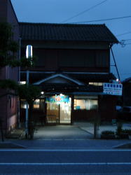 JR大津駅から徒歩2分、一番近い銭湯。 駅の左手から浜大津へ向かう商店街を歩いて1筋目を左折すると、古びた街並みに溶け込むような「ゆ」の看板が見える。 県庁所在地の中心駅から2分でコレです大津戸を開けるといきなりタタキに番台という、古いスタイル。番台ではこの銭湯にふさわしいレトロなバーサンが相撲中継を聞きながら、虫眼鏡で新聞を読んでいる。 滋賀県の銭湯料金355円を支払って靴を脱ぐ。下駄箱なんてないので脱ぎっぱなしだ。 脱衣場にはロッカーもなく、棚に籠が並んでいるだけ。おもしろいのはこの脱衣籠に書かれたヒラガナのランダム配列。バーサンに、 「この字は何? いろは、やったんですか?」 と聞くと、新聞から目を離さずに黙ってうなづく。商売気皆無。 きむしらあ、すう、せ、ふところが下駄箱もロッカーもないのに、浴室入口上部にアルプス&湖水のモザイクタイル絵があったりする。 浴室はこじんまり、天井も低い。男女仕切り壁側に、カマボコ断面型の深浅の浴槽がある。こまかいタイル張りで、ジェットつき。42度と書かれてあるが、明らかに44度くらいはあった。 そして奥の壁にもアルプス&白鳥の湖のモザイクタイル絵があり、さらに壁最上部が5色の細かい長方形タイルで飾りつけられているのが目をひいた。 客は他に誰もいない。 静けさや タイルに染み入る ジェット音 上がりは、残念ながら飲み物販売はなし。 レトロな小規模田舎銭湯の深き味わい。(2004.3.20) |