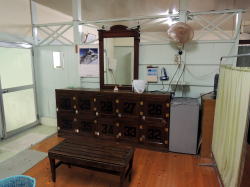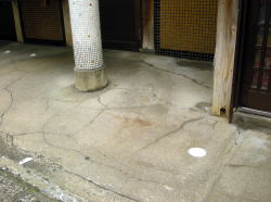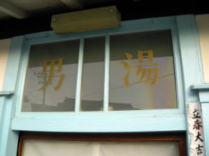 長崎の路面電車・思案橋電停近辺は飲み屋が集まる賑やかなところ。電停の南西、丸山公園の奥の坂道を登って行くと数分で1軒の古き銭湯あり。 ![]() (左)かつて遊郭があった界隈 (右)ナナメの戸、暖簾なし 外壁タイルや玄関のアール状ひさしなどがエキゾなチック臭を発散してます。 中に入るとタタキに木の下駄箱があり、番台におやじさんが座っている。 脱衣場は、衝立を挟んで黒いソファと木の長椅子が背中合わせ。男女仕切り、古い大鏡、体重計などにイニシエの香りが漂う。 ![]() (左)脱衣場から見た玄関タタキと下駄箱方面 (右)木のロッカー 浴室はわりと広い。中央やや奥にデンと主浴槽、奥に2槽。 主浴槽は四隅が丸くなっている。フチなどにエンジ色の豆タイル、他は不揃い小石型タイルが張られている。ハンマーヘッド型の塩ビ管から給湯されている湯はややぬるめ。底からの気泡が豪快に盛り上がる。 よく見ると湯舟の外側に2カ所のでっぱりがあり、その内側からジェットも噴出している。水流に揉まれ煽られて文明開化の花が咲く。 奥の右側槽は漢方七度煎薬湯、やや熱めで漢方薬の入った袋が沈んでいる。こいつは疲れた足腰に嬉しいよぅ。 もう一つは水風呂、これも嬉しいねぇ。ついつい長風呂だな。 湯に身を任せて見上げれば、天井中央の大きな四角い湯気抜きが風情よし。だが天井全体は水色の新しいボードで改装されている。カラン・シャワーの出もいいし、まだまだ現役だ。 目をひかれるのは男女壁にある美しいタイル絵、これはちょっとした見ものだ。武者が馬で海に入り、敵船に弓をひいている図だが、こんなの風呂屋で見たことないぞ。 上がっておやじさんに聞くと、タイル絵は壇ノ浦の源平合戦「扇の的」の場面で、弓をひくのは那須与一だそうだ。長野県の伊那で作られたもので、昭和12年からあるとのこと。 「原爆被害はなかったんですか」 「原爆で浴室天井が落ち、壁も倒れたけど、タイル絵は丁寧に1枚1枚はがして再利用した。これだけが残ったんだよ」 ああ、ここにもまた苦難の歴史を乗り越えてきた銭湯あり。俺の心は今日も雨だった。 (2008.4.6) →長崎旅行記 |