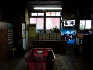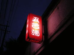 正月3日、長崎。 これまで何度か前まで行きながら、定休日だったり営業終わり時間だったりで入れていなかった、長崎孔子廟の向かいの日栄湯。ついに入ったぞ。 ![]() (左)玄関くぼみ系 (右)水色がなぜか嬉しいんです 正面中央にナナメ窪み玄関、その上に「湯榮日」。 中に入るとタタキに木組みの番台があって、ええ感じのおかみさんが座っている。 すぐ前が脱衣場、深い茶色の平格天井が重厚感をカモし倒しておるではないか。なんでも大正末期から100年ほどを経た建物っちゅーハナシ。 ![]() (左)下駄箱に鍵なし (右)脱衣場、しっぶ~! 俺はこういうとこで裸になるのが大好き。なんかトクした気分になるやんか。 風呂場へ入ると、真ん中に長方形の湯船がデーン。ジェットが2本噴出中。心もちぬるめの湯かげんかな。 奥に岩風呂風の水風呂と、漢方薬湯の浴槽がある。薬湯は一部が電気風呂になってるレアなパターン。 壁画などはないけど、小さなタイルがピンクなど淡色系の色合いでよろしい。この日は初風呂のせいか、なかなか賑わっている。 正月風呂をゆっくり楽しんだ俺だが、いちばんの感動は風呂上がりに待っていた。 脱衣場に上がるや、部屋全体がピンク色に染まっているではないか! ファンタジック長崎写真では逆光のためよくわからないが、とにかくピンクなのだ。これはいったいどうしたことか。 おかみさんに「こここ、これはいったい・・・」と尋ねると、どうやら向かいの孔子廟の外壁レンガに夕陽が反射して脱衣場に差し込み、このような奇跡の現象が起きるようだ。 ピンクの不思議な光に包まれながら、裸で椅子に腰かけて牛乳を飲む。少しずつ深みを増し、紅色へと変化してゆく小宇宙。 長崎に来たならば、夜景やランタンの灯もいいが、風呂好きならばこの日栄湯のピンクに染まる脱衣場をぜひ経験すべきだろう。 (2015年1月) ※「レトロ銭湯へようこそ西日本版」に掲載されました。 (本書が買える銭湯一覧) |