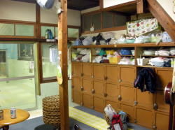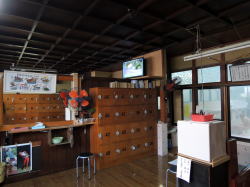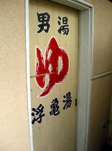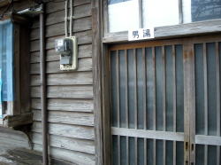 諫早駅から県営バスで30分ほど離れた橘湾の漁港、有喜(うき)へやってきた。 え? いや、諫早の銭湯を電話帳で探したら、ここ1軒しかなかったので。しかも電話帳には屋号じゃなくて経営者のお名前で載っていた。 有喜は小さな入り江にこじんまりとまとまった小漁村だ。集落内の道は当然のごとく細くてグネグネ。 港に出て後ろを向いたら、煙突が見えた。 ![]() (左)あれだな! (右)狭い路地を通って表へまわる。左が銭湯の建物 ![]() (左)正面、屋号の上に「くすり湯あり」とある (右)よかった~ ここ数年、電話帳情報が銭湯の廃業に追いついておらず、しかもこういう田舎の銭湯はたいてい休みが多いので、営業中であることを確認できたときの喜びはひとしおだ。 さっそく入ろうとしたら、入口の戸が・・・。 こここれは・・・!?木戸がピシャっと閉められているではないか。でも「本日あります」よね・・・。 ともかく開けてみたら、暖簾は内側にかかっていた。狭いタタキ横の番台には比較的若い男性(といっても俺よりは年上だろうけど)が座っている。ちゃんと営業中だ。 狭い脱衣所は素朴な田舎銭湯そのもの。低い天井、古い広告。ロッカーに鍵はなく、金具をひっかけるだけ。 ![]() (左)内側から見た玄関の戸と、オリジナル暖簾 (右)脱衣場 ![]() (左)絵のタッチが最高な古い広告板。「まるたか」は長崎の地場デパート (右)泣ける 浴室もこぢんまり、しかも貸切だ。 隅に湯舟一つだが・・・ややっ、白濁してるぞ! 緑色や茶色の湯は多いが、白濁はレアだ。むろん入浴剤だろうが、山歩きのあとだけに嬉しいなあ。 辺鄙な田舎の古い風呂だが、きれいに維持されていて清潔感がある。 小さな極楽湯はややぬるめだった。 天井に高々と開いた四角い湯気抜きを眺めつつのんびり浸かっていると、お客が入ってきた。挨拶したら、「熱いとかぬるいとかないか?」と聞いてくる。 「ちょっとぬるいですね」と言うと、湯舟の奥にある蛇口をひねって熱い湯を出してくれた。 それぞれが自分の好みで勝手に湯温を調節するのも田舎銭湯の味わいだ。都会で起こるモメゴトがここでは起こらないのだろう。 この客は70代の漁師で、橘湾近辺でニボシなどを獲っているらしい。 「若い頃は北海道やらいろんなとこでサバなんかば獲ってたばい。今はもう有喜ん漁師も年寄りばっかじゃ」 カラン3つ、きちんとシャワーもついている。 桶は家庭用の普及品だが、カラン下の台にステンレスを継ぎ足して置きやすくしてあって、自宅の風呂のように使い勝手がいい。 上がりは飲み物なし。 番台の主人は2代目で、漁師だった父が始めたのを20年前に手伝うようになったそうだ。 「ここはなんでウキカメ湯という名前なんですか?」 「浮亀と書いて、うき、です。今はここの地名は有喜と書きますが、昔は海から見たこの入り江の高台が亀が浮いてるように見えたので浮亀という名前だったらしいです。それをあとから有喜に変えたみたいで」 諫早にたった1軒だけ残った素朴な銭湯。この存在の貴重さは何ものにも替え難い、と俺は思うのだが・・・。(2008.4.4) |