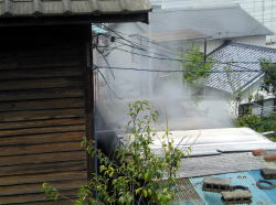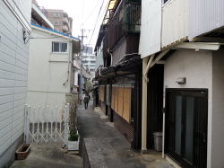 玄関前の路地の狭さではチャンピオンクラス。 それに加えて、3時間半という営業時間もまた日本有数の短さだ。この難易度の高さにしびれちゃう。 路面電車を諏訪神社前で降りる。電車通りの1筋北はシーボルト通り、老舗の百貨店やひなびた市場などが残る渋いまちなみだ。 そのさらに1筋北に、狭い路地がある。自転車が来たらよけなあかんような狭さ。ははは、まさかこんなとこにね・・・おまんのや! 風呂屋が! ![]() (左)白菊湯のある路地を東側から (右)狭い! 素敵! ![]() (左)反対側から。全体を撮れん! (右)「男湯」のナナメ上に「白菊湯」と表札が 窓にすだれがかかっているのが白菊湯だが、暖簾も出てないし、知らなければ気づかずに通り過ぎる確率99.9%。あとの0.1%は奇跡およびマニア。 つまり風呂屋の存在そのものが部外者にはわからないようにできている。 中に入るとタタキに番台がある古いスタイル。渋い空間だが、脱衣場は意外にスッキリしてるやないの。 ![]() (左)郷愁の玄関内側 (右)男女壁の上部がユニーク。風呂屋とは思えぬ小さな鏡! 右上写真の男女壁が素晴らしくもサワヤカだ。扇風機もいい味を出している。 鏡の下に木の脱衣箱が10箱あるけど、反対側は合板の白い脱衣箱が壁を占めている。丸籠もあり。 裸になって浴室へ入ると、なんと中央に円形浴槽! 水色タイルで固められた年季モノで、とっておきのモノが出てきた! みたいな喜びを感じる。 浴槽内にジェットが噴出しているが、循環式ではなさそう。湯船のフチにこんもり盛り上がった突出部位があり、そこに取り付けられたごついカランをひねると湯と水が供給される。いやーこいつは今どき珍しくもイニシエなるお風呂じゃありませぬか。 湯はややぬるめだった。大カランをひねればもっと熱くできる。でも常連客が4~5人いて、誰も湯を加えてなかったので遠慮した。 奥に扇型の副浴槽があって2分割されている。手前は水風呂、奥はエート、薬湯やったかな? スマヌ忘れた・・・。 まあなんにせよ明るいうちから風呂に入るのは極楽。明るいうちしか営業してないけどなここは。 湯気にけぶる風呂場に、外の光が差し込んでキラキラしている。軽く挨拶を交わしながらも静かに湯に浸かり、体を洗う常連客たち。ジェットの音だけが低く響いている。 上がって番台のおやじさんに、「古そうですけど、ここは原爆の前からあるんですか?」と聞いたら、そうだとおっしゃる。 地図を見ると、この場所と爆心地との間には標高200mほどの尾根が金比羅山から伸びている。その山が爆風を防いでくれたのだろう。 長崎の狭い狭い路地奥に、ひっそりと隠れ家のような風呂屋があり、レトロな円形浴槽に湯が沸かされて、わずか3時間半で素早く閉じられる。まるで何事もなかったかのごとく。 この地球の片隅への埋没っぷり、人目の忍びっぷりに、静かな興奮を覚えないわけにはいかない。いやー旅はオモロイ、風呂屋はオモロイ。(2014.1.6) ※「レトロ銭湯へようこそ西日本版」に掲載されました。 (本書が買える銭湯一覧) |