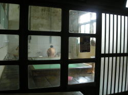 壱岐の中心、郷ノ浦からバスで20分ほど北上すると、湯本という鄙びた漁村に着く。ここはその名の通り、古代より湧き続けている温泉地で、何ヵ所か共同浴場があるらしい。 バス停から郷ノ浦方面に少し歩き、平山旅館を過ぎたところで右手の海側へ下りてゆく道をなんとなく覗いたら・・・! ![]() (左)海をバックにヒナビな風呂屋さん発見! (右)料金はここで声をかけて払う うーむ、夕焼けを背負ってタマラン風情やがな。でもこの建物は浴舎ではなく、経営者の自宅のようね。 玄関でゼニコだけ払って、左手奥にある別棟へ向かう。 こっちが浴舎入り口にはどっちが男とも女とも書いてない。 どちらにしようかな天の神様の言うとおり、エイッ! と右側を開けたら、一人のじいさまが服を着ているところだった。えがった~。 脱衣場はこぢんまりしているが、わりと新しく改装された感じ。棚にプラ籠が並んでいる。 じいさまは、「ここの湯が一番キクんじゃ。神経痛にも効くし怪我も治る。わしゃ芦辺から来とる」と言って、帰ってゆかれた。芦辺というのは島の反対側だ。 ともあれ、荷物と服をプラ籠に押し込み、裸になって浴室へ。 浴室これまたこぢんまりした浴室だ。 隅の源泉マスから石の湯船にチョロチョロ注ぎ込まれる湯は、50度近くありそう。向かって左が熱く、右は43度くらいにさめている。 湯本の湯はすべてこのように茶色くにごっている。床や壁もその成分で茶色く変色している。 舐めたら塩味。でも海水よりはやや薄い感じ。 手前にはカランが2つある。意外にも自動調温式の最新カランだ。 静寂の風呂に、ひとり浸かる。アツアツの湯に包み込まれる。 玄界灘に浮かぶ島の小さな共同浴場で過ごす、至福のときなのね。 ちなみに湯本には、バス停のすぐ向かいにある万福温泉をはじめ、全部で4軒ほど共同浴場があるようだ。宿で聞くと、この高峰温泉がいちばん古いらしい。 (2010.11.17) |