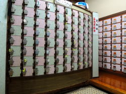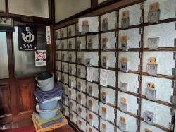 暑い日、東京在住の息子と目黒に行った。 ついでに目黒不動へ寄ったら、本堂手前の冷たい湧水池に水掛け不動さんが立っている。 不動さんに水をかけると、まるで魔法のようにその周囲だけ気温が数度下がり、スーッと汗がひいた。ありがたさを感じさせられる清水だ。 いい水が湧く場所が神聖視され、やがて不動が祀られるようになったのだろう。 そのあと、すぐ近くにあるこの銭湯へ来た。 堂々たる破風の瓦屋根だが、奔放に伸びた脇の樹木や、真ん中に遠慮なく置かれた自販機らの無造作感が、東京とは思えぬ田舎フレーバーを醸し出している。 それにしても暖簾が出てないけど、やってるのかな? 玄関の中を覗くと、そこにも繁茂する植物があり、脚立やバケツ類がそこここに置かれている。 ![]() (左)庭ではなく玄関 (右)入口手前にもバケツ とりあえず靴を脱いで渋い木の戸を開けると、普通に営業中だった。 番台のおかみさんが開口一番、 「うちは水道水は一切使わず、全部地下水なんです」 とおっしゃる。だから、もったいないからシャワー出しっぱなしにしないでね、というような諸注意を笑顔とともにおっしゃった。 明らかによそ者の俺と息子を見て、銭湯初心者と思われたのだろう。それだけ東京では銭湯ビギナーが銭湯へ足を運ぶようになったということなのかもしれない。 「へー、そういやさっきお不動さんに湧き水が出てましたけど……」と俺が言うと、 「そうでしょ、それと同じ流れですよ」と嬉しそうにおっしゃった。 そいつは楽しみだ。 脱衣場は高い折り上げ格天井の東京クラシック造り。庭があって鯉が泳ぐ正調銭湯だ。 玄関ほどではないにせよ何かとものが多いが、コイン洗濯機があったり、棚に漫画が豊富に置かれているあたりに下町フレーバーが漂っている。 あれ? でも目黒って下町とちゃうよね? どっちかというと山の手のシャレオツエリアのような気がするんだが・・・そこにこんな風呂があるというのがオモロイね。こっちが本来だよなあ。 浴室も東京標準の水色に塗られた高い2段式天井。奥壁には中島さんの富士山、女湯は立山連峰のようだ。まったくの東京スタンダード。 風呂は奥に深浅2槽、こちらは東京的な熱湯ではなく適温で心地よい。泡ブクがキショクええのぉ。 男女壁には動物が配置された九谷焼系のタイル絵(やや色があせてきてる部分あり)が横幅ずーっとはめ込まれているが、立ちシャワーブース3台のレパレート壁で分断されている。 湯に浸かっては、島カランの冷たい水を浴びまくり。あ~身も心もしびれる。もう俺は人間不動だ……! 先に上がった息子は、脱衣場でマンガを読みふけっている。俺は牛乳を飲みながら大相撲千秋楽を最後までゆっくりと楽しんだ。 昔ながらの風情あふれる都会のオアシス。おかみさん、おやじさんの素朴なお人柄もよい。 (2016年7月) |