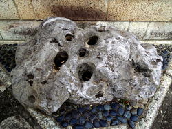 クソ暑い炎天下の東京、石神井駅からだいぶ歩いたぞ。15分くらいか。 閑静な住宅地を抜けて幹線道路へ出たと思ったら、なにやらお城か大金持ちのお屋敷みたいな建物が現れた。 まさか銭湯じゃないよね。うん。 ![]() (左)デカイんだゴツイんだゴージャスなんだ (右)威風堂々 なんと、恐ろしいことに銭湯であった…。わしゃもう呆然と立ち尽くしたね。そしてちびった。ちょっとだけ。だって中高年なんだもん。 ![]() (左)東京的な美意識の権化 (右)獅子の石板レリーフ 千鳥破風&唐破風の巨大な二階建てが、銭湯の標準サイズを大きく上回っている。デカイだけでなく建物の端々にまで、いわゆる「粋」の美学が完遂されている。 銭湯の玄関付近にありがちな自販機や選挙ポスター、「おい小池!」などは一切ない。 ![]() (左)玄関 (右)玄関わきにあった変な石 中に入ると、番台に穏やかなばあさんがいらっしゃる。 脱衣場には島ロッカーやベンチ台などがなく、やたら広々としている。脱衣箱は20個しかない。あとは丸かご。 天井は改装されていて格天井ではなく、さほど高くないのがやや意外だ。大黒柱は石張りになっている。こんなん初めて見た。 そして何といっても庭が立派! 池があり、縁側からトイレへ行く途中にしばし眺めてしまう。いやぁよいねー。 男女境の仕切りには磨き丸太ノセ、これは東京の定番ね。 浴室も広いぞ広い、中央に島カラン1列のみで余裕たっぷりの空間だ。 両サイドのカラン列、最初はシャワーのある男女壁側に陣取ったけど、反対側を見たらシャワー位置にドバーっと横長の水槽が嵌め込まれ、大きな錦鯉や金魚、タイリクバラタナゴが悠々と泳いでいるではないか! 座る場所を変更だ。 ウーンこれは楽しい。じつを言うと俺は日本の淡水魚オタクなんよね~。股間をゴシゴシしてる目の前を金魚がヒラヒラって。こいつは値打ちある! そのかわり奥壁にはペンキ絵もなく、じみ目のモザイクアートで林が描かれている。 湯船はその下の深浅2槽のみ。深は気泡、浅はジェット2本。 え? これだけ大きな銭湯で、これだけ広々してて、これだけゴージャスな庭や水槽を設置しているのに、湯船は二つだけ? うーむ。俺は別にいいが、関西ではまず考えられんな…。 力の入れどころが、東京的「粋」に集中しているということなのかもしれん。何軒入っても銭湯いろいろやのぉ~。 (2014.8) |