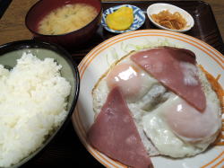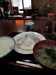 練馬区役所の近くに、凄みさえ感じさせる激渋食堂がある。表に貼られたメニューがえらい安いで! ということで練馬在住の息子と8時半に朝メシ食いに来た。 魅かれる!中に入るとカウンターのみの狭い店で、7~8人で満席になる。それがけっこういっぱいやん。先客の背中と壁のスキマをすり抜けて、真ん中あたりのカウンターに座った。 カウンター内にはかなり高齢のおばあさんがお一人。休みなしでやっているという。 頭上に一品ものメニューが豊富にズラッと貼ってある。カウンターとおばあさんの間に、おかずケースが置かれている。カレイ煮付けがうまそうだ。 ![]() (左)この狭さ (右)おかずケース 左側の中年カップルは朝から飲んでいる。右側は大阪弁の酔っ払い女と男ダチ2人ほど、やはり飲んでいる。 どう見ても朝まで飲んでの帰りやな。両側でタバコすぱすぱ吸いやがって。 ごはん+味噌汁+漬物で200円だ。俺はそれにハムエッグ350円、息子は塩サバ350円。 間違いのない安心おふくろ味、二人で1100円だった。 ハムエッグ整っているおばあさんが一人で切り盛りするミニ食堂は、たいてい客も年寄りなことが多い。だが、さすがは東京というべきか。幅広いニーズがあるようだ。 しかし休みなしとはね・・・客としては有難いけど、おばあさん、お体を大切にやっておくれよ~。 ファーストフード店やファミレスのパートでこき使われているオカーチャン方は、ぜひこういう店をばんばん開いてもらいたいものだ。安くておいしければ、ぜったい流行る。 (2015年4月) |