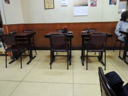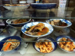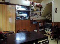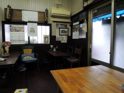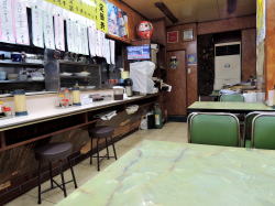 要町からややこしい道を徒歩7~8分、池袋からなら10分くらい。やや入り込んだ入口に遠慮がちな暖簾がかかっている。 中に入ると閑静にして見事な昭和空間。でも4人テーブル×3に対して2人テーブル×5と、少人数を想定したテーブル配置がちょっと変わっている。 ![]() (左)静かな店内 (右)2人がけテーブルが並んでいる 卓上メニューを見たら、どれも安いやん! 「とんかつ」も「豚しょうが焼」も320円、オムレツ200円やとう! 丼物や洋食は500~700円台。ラーメン490円。 おばちゃんも感じエエし、なんかここすでに気に入ったわ。 そのメニューから、めし小120円、味噌汁60円(!)、ハムエッグ180円を注文した。計360円の朝めし。じゅうぶんやん。 しかも味噌汁は60円やのにワカメうまい。ハムエッグも過去最安値やぞ、一つ玉やけど。 めしは小でもたっぷり料理は奥の厨房でおやじさんが作っているようだ。 俺が来たのは11時半ごろで、相客ははじめ60歳くらいの夫婦一組だったが、12時近くになると初老の4人組、さらに常連ぽいおっちゃん一人が来た。 そのおっちゃん客が4人組に、 「あそこん中におかずが並んでるから、そこから選べるよ」と厨房の窓口を指している。それで俺も初めて作り置きおかずの存在に気づいた。 厨房の窓口から覗くと、厨房内は広く、覗いたところにいろいろウマそうなおかずが並んでいるではないか。 ![]() (左)あそこが厨房窓口 (右)おおお! 朝っぱらから刺身やらなんやら豊富やんか! 雰囲気、値段、料理、すべてよし。また来なければ! (2015年4月) |