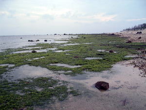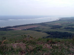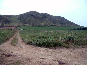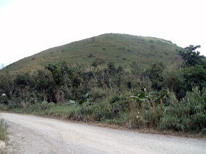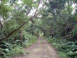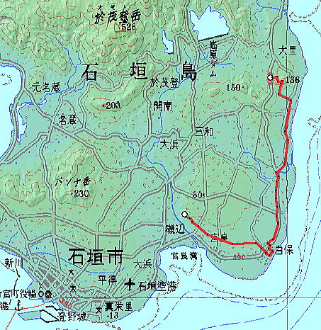 6日目◆石垣島:カーラ岳から新空港予定地を徒歩縦断する 石垣島の離島桟橋に着くと、Kさんが車で迎えに来てくれた。今夜はKさんの実家に泊めてくださると言う。 でもまだ昼過ぎだ。俺は「カーラ岳の麓まで送ってください」とわがままを言った。 石垣島には、長年にわたる大規模な反対闘争のすえ、新空港が建設されることが決まった。 なぜ反対が根強かったかというと、その新空港計画が、北半球で最大級のサンゴ礁をぶっつぶして作るというものだったからだ。 そして反対運動は破れ、サンゴ礁をぶっつぶすことが決定した。空港ができたら、こんな大きなサンゴ礁はもうオーストラリアのグレートバリアリーフあたりまで行かないと見れなくなるのかもしれない。 カーラ岳はその建設予定地・白保海岸の北にある小さな山だ。この山も空路の邪魔になるために半分くらい削り取られるという。そしてこの山を削った土でサンゴ礁を埋め立て、人工島の滑走路を作るらしい。 新空港はつい先日、起工式が行なわれたばかりだそうだ。もう少ししたら、白保のサンゴ礁もカーラ岳も見ることができなくなる。 その最後の風景を見ておきたいと思った。
