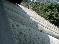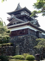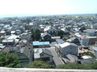 勝山からえちぜん鉄道を永平寺口で降り、そこから乗ったバスは山間を抜けて福井平野へ出る。広々とした青い田んぼの間に、新興住宅地がポンポンと現れる。このへんはもう福井市への通勤圏なんだな。 30分ほど乗って、丸岡の中心らしい「本丸岡」で下車。 丸岡は市ではなく町だが、人口は勝山市より多く、しかも増加中のようだ。福井市のベッドタウンになりつつあるんだろうが、中心地はこじんまりした城下町。本多作左衛門重次の「一筆啓上 火の用心 お仙泣かすな 馬肥やせ」という有名な手紙にちなんで「日本一短い母への手紙」を企画として成功させた。なかなかやるやん〜、な町だ。 この町のシンボル・丸岡城は、勝山のアミューズメント「勝山城」とはわけが違う。日本に現存する12の木造天守の中で一番古いホンモノで、重要文化財だ。 ![]() (左)こんな時計台があった (右)小川の向こうに城山発見 小さい町なのでお城はすぐに見つかったが、腹が減ったので、ともかく福井のおろしそば。 「山田そば」という小さなそば屋を見つけて入る。お盆の帰省で人口が増えているのだろう、家族経営の全スタッフは出前で大忙しのフル回転だ。 やっと出てきたおそば&ビール、うまいねえ。 腹もふくれて丸岡城へ。小さい城だが、この城の名物はなんといっても屋根。なにしろ瓦製造技術が完成する前に建てられた古い城なので、瓦が石でできている。 瓦1枚が20〜50kgあるっちゅー代物で、全部で6000枚。それを支えるための内部の構造材も迫力があるわけよ。エセ建築評論家としては押さえておかねばならん建物なのだね。 丸岡城、こじんまり、でもどっしり ![]() (左)地震で落ちたシャチホコも石 (右)これです、屋根の石瓦。手を伸ばしてナデナデしちゃう 第2次大戦中の福井大地震で1度倒壊したらしいが、バラバラになった材木や石瓦をていねいに組み直して元通りにしたんだと。材木も7割は元のものが使われているらしい。たしかに、折れた手すりなども古い材に新しい材を継ぎ足した匠の技があちこちに見られる。 それにしても木造天守の最上階って、なんでこうも真夏でも涼しいんだろうか。眺めもいいし。俺は別に城マニアではないんだが、古い木の香りと肌触り、眺めのよさ、建物としてのおもしろさを堪能できるから、こういう城は大好きだ。 天守閣からの眺め。コンパクトな丸岡市街が全部スッポリ見える城から降りて資料館なども見学したら、こんどは庶民文化の極み、銭湯へ。こっちは現役営業中だぞ。 丸岡の旧市街でたった1軒の霞湯、これがまた素晴らしい。福井銀行の向かいで静かな存在感を発散しております。しかし意外にも浴室は新しく改装されて、どなたさまも入りやすい。霞湯の詳細もこちらで。 (左)お堀の脇に立っていたタブノキ (右)霞湯湯上がりサッパリ、本丸岡のほうへ向かうと丸岡駅行きのバスが信号待ちをしてるじゃないか、下駄で猛ダッシュ。(わたくし神戸から下駄履きなんです) バスは15分たらずで北陸本線の丸岡駅へ到着。すぐに来た普通列車に飛び乗って、10分ほどで福井駅に到着。こんな田舎で待ち時間もなしにスイスイ行けるなんて運がいいわい。 福井駅近くの居酒屋、あとは飲むだけ腹も減ったし、駅前商店街の中のオヤジ居酒屋へ。イカ刺しなどを食ってビール。うまいねえ。さらにビル地下の別の居酒屋へハシゴし、え〜っと何を食ったっけ、とにかく日本海の魚を食って、またビール。 短時間でゴキゲンな酔っ払いを完成させ、神戸まで帰れる最終の鈍行&新快速で無事に帰りましたとさ。 おしまい。 |