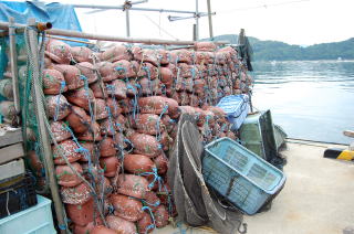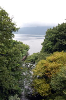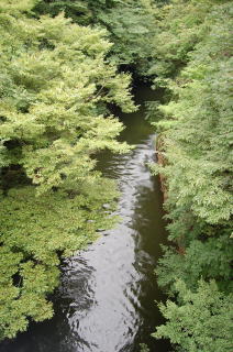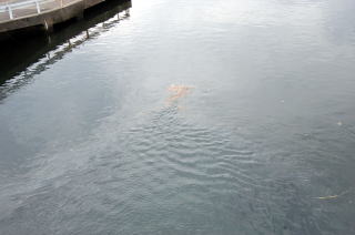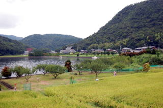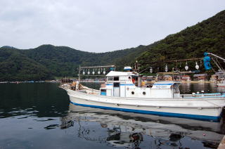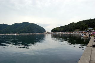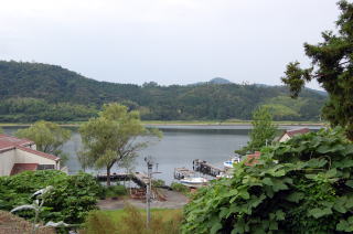 久々子浜(くぐしはま) 美浜駅周辺から海へ向かうと、松原集落に入るところで正面に神社があった。 名前は書かれていないが、鎮守の森にすっきりと包まれた姿がじつに美しくて、いきなりここで休憩だ。 ![]() (左)どうですこの風景 (右)小さな拝殿と小さなスベリ台がよかです ![]() (左)横の分社の両脇になにかいる (右)なにこれ? ゴジラ犬? ちょっとこわい 神社から西へ。久々子集落もまた美しい。正しい日本の田舎だね。 途中で海岸に出てみた。堤防沿いには民宿がたくさん並んでいるが、夏の終わりの朝の海には泳ぐ人もいない。大学生の男子グループが5人くらいでビーチボールで遊んでいたのみ。 ![]() (左)久々子集落の道 (右)久々子浜。静かです。前方の小さな丘が飯切山 行く手にこんもり茂った丘が2つ並んでいる。飯切山という名前で、この小さな山が海と湖とを隔てている。 飯切山の2つの盛り上がりの間はぐいっと切れ込んだ低い峠になっていて、道はそこを抜けてゆく。抜けたところに久々子湖があるはずだ。 久々子湖(くぐしこ) 坂を登って飯切山の切れ目に立つと、すぐそこに久々子湖が見えた。 緑に囲まれた静かな湖水の、おだやかな風景だ。 湖岸に沿って少し歩くと、橋に出た。久々子湖はこの橋のかかる小さな水路で日本海とつながっている。 橋の上から水面を見ると、ちょうど海の水が久々子湖に流れ込んでいるところだった。久々子湖は満潮時に海水が逆流する汽水湖で、三方五湖の中では2番目に塩分濃度が濃い。 ![]() (左)峠を抜けると久々子湖が見えた (右)橋の上から久々子湖を見る。海の水が流れ込んでいる ![]() (左)この三角形のところで海水が湖水の下にもぐりこんでいる (右)橋の上から海のほうを見る 日本海の水は湖水よりもずっと澄んでいる。 過去、汽水湖の出口を締め切って淡水化された湖はことごとく水質悪化に見舞われてきたが、その理由が一目瞭然だ。潮の干満は汽水域にとっての呼吸なんだな。 橋を渡って早瀬集落を西へ。 レインボーライン(観光用自動車道)の入口を過ぎると、再び海が見えてくる。 レインボーライン入口のドライブイン廃墟日向湖(ひるがこ) 笹田の港を右に見ながら海沿いに進むと、前方にまた小さな橋が見える。 あそこが日向湖の入口だな。 ![]() (左)湾の向こう(写真中央やや左)に小さな橋が見える (右)橋のたもとに到着 小さな橋はボヨンと盛り上がっていた。 ここは日向湖と海との結節点だ。 久々子湖と海との間は短いながらも水路になっていたが、ここはほとんど直結状態。海から湖まで100mくらいしかなさそうだ。 ![]() (左)橋の上から海を見る (右)同じく、日向湖を見る 美しい水の中を、海の魚がたくさん泳いでいるのが見える。日向湖の水は完全に海水で、タコ・クロダイ・ボラ・イワシなどが獲れるらしい。 日向湖の周囲は盆のフチのように急傾斜の山が取り囲んでいて、平地はほとんどない。 ここでは湖全体が漁港になっている。湖の内側に面した日向集落は完全に漁村だ。さっきの久々子湖の内側に面した早瀬集落とはまったく様相を異にしていて、ここが日本海の荒波から隔離された天然の良港であることがよくわかる。 海の幸を供する民宿も多い。 ![]() (左)イカ釣り漁船などがひしめく (右)たこつぼ漁もさかんなようす ![]() (左)日向湖の南端近くから、海への出口を望む (右)日向湖の奥には船の修理場あり。正面の丘の向こうは別の湖だ 日向湖は最南端にトンネルが掘られ(1934年、嵯峨隧道)、南隣の水月湖とつながっている。が、そのトンネルは今は閉じられていて、水の行き来はないらしい。 塩分濃度や深さの異なる湖を安易につなぐと、水質の問題がさまざまに発生するようだ。 浦見川(うらみがわ) 日向湖の南東部から、また小さな峠道を越える。途中の林にニホンザルがいた。 峠を下ると、水田が広がる。このあたりは久々子湖の南端に面しているが、字の名が変わっている。草かんむりにうかんむりを重ね、その下に丁の字を書いて「お」と読むらしい(左下写真)。 「お」だぞ、「お」。「津」も短いけど、ローマ字で書くと「Tsu」と3文字になる。ここは「O」の1文字だ。意味がさっぱりわからない。 ![]() (左)「O」の標識 (右)お集落と水田 農作業をしているおじさんがいたので、「お、とはどういう意味ですか」と聞いてみたが、わからないという。 「ここの先祖はみな300年前に海山(みやま)から移って来た」 ということだった。海山とは水月湖の西端にある集落で、西側の塩坂越で日本海と背中合わせになっている土地だ。湖と山に挟まれて、耕地は乏しい。 しばらく進むと左手に久々子湖が見え、道はわりと大きな橋を渡る。この橋は、水月湖から流れ出て久々子湖へと注ぐ浦見川の河口にかかっている。 浦見川は、人間の手で掘削された人工河川だ。この川は350年も昔に掘られた。 それは、寛文2 (1662)年の春、マグニチュード7.6の大地震が若狭地方を襲ったことに起因する。 それまで三方五湖のうち上流部にある水月