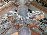 (左)寺町のとある寺で、鐘楼の木彫り装飾
