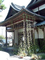 (左)アサガオを愛する寺 (右)珍しく寄棟造りの古い寺。かなり痛んでいる