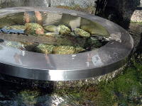 宿から徒歩数分、織田信長に敗れて大野で切腹した朝倉義景の墓のそばに、イトヨの生息する湧水池がある。その近くに水琴窟があり、その横にまた湧水。