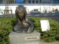 道沿いに、なにやら不思議な銅像がポツンポツンと並んでいる。ハハア、これか。敦賀在住の知人が「敦賀の恥」と言っていたやつだな。