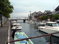 敦賀温泉から北上すると、間もなく船だまりに出る。水路にボラがたくさん泳いでいる。