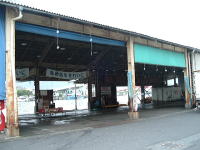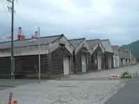 (左)港大橋の手前、日本海側最古の石積み灯台だそーな (中)夕方はカラッポの魚市場 (右)江戸時代初期から続く酒蔵