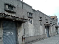 (左)古い倉庫群 (中)マブタつき(?)の窓がおもしろい倉庫 (右)さすが漁師町、母と娘が岸壁で釣りしてます