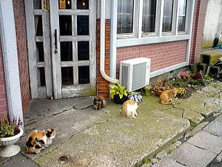 むつ市のターミナルからバスに乗った。途中、大畑で寄り道してさらにバスを乗り継ぎ、大間崎までほとんど半日近くかかった。 バスを下りたら、そこはいきなり最北端だった。本州先端のギリギリに道路が走っている。 ![]() (左)本州の北のサキッポ (右)まぐろを釣る手 まず、寒い。まだ10月はじめだというのに、重苦しい曇天の下に強風が吹き荒れ、容赦なく体温を奪ってゆく。 そして、海が激しく鳴っている。波がうねうね、ドップンドップンだ。こんなところに船を漕ぎ出すことを考えるだけで怖くなる。 上左の写真はまさに下北半島の切っ先に立って北を眺めたところ。沖に浮かぶのは弁天島で、そこに大間灯台がある。遠くの山は北海道・渡島半島だ。 この狭い海峡を境に、動物や鳥の分布相が異なっている。ブラキストン線というやつね。つまりこの先はシベリアと同じ生息区域に分類されているわけだが、それもうなづけるなぁ、これは。 鳥も通わないくらいだから、人間にとっても近世まで大きな障壁となってきた。「蝦夷地」なんちゅーのはなんとも失礼な呼び名だが、そう呼びたくなる心情も理解できてしまう。そんな風景だ。 観光客が三々五々、何組かいるが、みな寒そうにしていて長居はしない。 岬の道路沿いにマグロ料理兼土産物の店が何軒か並んでいる。でもモロに観光客向けだし、腹も減っていないのでパス。 内陸側には小さな集落があって、干物を焼いて出している店があったりする。 こんなふうに店先に並んでいる大間の漁港はここから2kmちょっと南にある。そのあたりまで海岸沿いに歩いてみることにした。 しばらく堤防沿いに歩いたが、海風がきつくて寒い。鼻がツーンとしてきたので、少し内陸側の道路沿いに移動する。 板張りの、いかにも漁村らしい家々や倉庫などがいい風情だ。 ![]() (左)NHKの連ドラのロケに使われた家、らしい (右)割石あたりを歩く 大間漁港の湾入。このあたりは小舟が並ぶさらに南下すると、おっと出ました、日本最北端の銭湯! まさしく本州最北端にふさわしい渋さだ。 ![]() さいはての風呂屋 でも残念ながら・・・うむ〜う、はるばる来たのに残念だ。 後日談だが、というかこれを書きながら今調べてみたら、この銭湯がタウンページから消えている・・・無念さ3倍増。 やがて大間漁港の中心部とおぼしきところに出た。 こっちには、さっきの小舟よりもずっと性能のよさそうな漁船がぎっしりと並んでいた。 マグロ1本釣り用の船かな周辺には旅館や食堂も何軒かあるが、時間的にどの店も開いていない。 町の印象は季節や天候、時間などに大きく影響される。このときは人けもなく、どんよりとした寒空ということもあって、「北の港」というにふさわしい寂莫たる景観だった。 港の突き当たりに1軒の喫茶店があった。白と灰色に覆われたわびしげな港の風景の中にあって、この店だけが不似合いな温かみを漂わせている。 入口に数匹の三毛猫が固まって暖をとっているふうなのも気になった俺は、すっかり冷え切った体と喉の渇きを癒すべくこの店に入った。 ![]() (左)喫茶店 (右)入口の猫たち 俺の場合、旅先で喫茶店に入ることはめったにない。自分でも、めずらしいな、と思った。 狭い店内にはオヤジ客が2人ほどいた。 窓べりの席に座った俺は、どうせならふだん注文しないものをと考え、ウインナーコーヒーを頼んだ。 やがてそれが運ばれてきたとき、俺はなんとなく「これを注文してよかった」と思った。 おいしかった窓の外の冷たい風景をぼんやり眺めながら、温かくて甘いウインナーコーヒーをすすった。 たまにはこういう感じも悪くない。 (08.11.30記) |