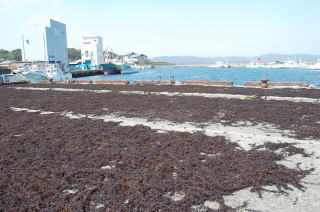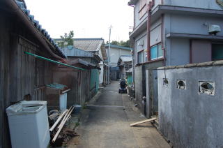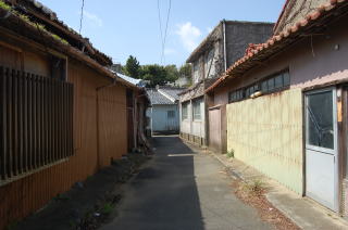 安乗寺の参道下は、的矢湾に面する北側の浜辺のすぐ近くだ。堤防に上がって眺めてみた。 ![]() (左)寺のガケ下の路地 (右)北側の浜、安乗埼方面の眺め ![]() (左)北岸の堤防上からみた砂州の町。中央やや上部の高台の三角屋根が安乗寺 (右)北の浜、漁港方面の眺め ![]() (左)北の浜から的矢湾口を見る。黒いのはヒジキ干し (右)津波注意の看板とヒジキ干し そして砂州内部の町を歩いた。 宇久井トンボロのような集落としての美しさがあるとはいえない。家々には生垣もなく、ボロボロの廃業旅館もあったりして、ややうらぶれたムードが漂う。 でもワカメやヒジキが洗濯物と一緒に干してあったりして、脱力系の生活感が俺には心地よい。 ![]() (左)砂州内には空き地もある (右)ちょっとおもしろい建物、そしてヒジキ干し ![]() (左)ワカメ干し (右)高台の住宅地に比べてやや殺風景 はるかぜそよそよ ![]() (左)安乗埼の旧島部分に近づいてきた (右)旧島の手前端には安乗神社がある トンボロ砂州が町としてのまとまりを持っている串本や宇久井と違い、安乗ではあくまで志摩半島部分に位置する漁港周辺および高台が町の中心であって、砂州部分はどちらかというと町外れ的な印象だ。 地形のおだやかな志摩では、紀伊半島のように険しい山が海際まで迫っているわけでなし、わざわざ危険な砂州に町の中心を置く必要がないのだね。 でも、そんなふうにツレなくされているトンボロの町もまた変態の俺にはかわいく思える。グヒヒ。 |