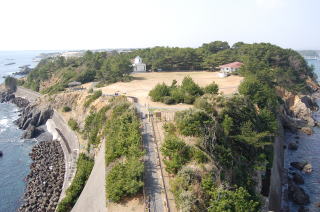 | 安乗神社の参道前から旧島へ入ると、旅館がたくさん現れる。どの宿もフグ料理の看板を出している。 そのまま道なりに500mあまり進むと、安乗埼灯台へとたどり着く。手前は広い芝生公園になっていて、「日本の灯台50選」に選ばれているらしい。最近はなんでもそれだな。 ![]() (左)四角い灯台 (右)灯台の上から志摩半島方面を見る。トンボロは森の向こうで全然見えない 遠州灘方面灯台は150円で上まで登ることができる。もちろん眺めはよろしい。 灯台の内部に、志摩市在住の松本高正さんという人がパラグライダーに乗って撮影した安乗崎の空中写真が何枚も飾られている。それを見ると安乗がトンボロであることがますますよくわかる。 帰って調べたらウェブでも公開されていた。これやこれ。俺も羽がほしいよ〜。 おしまい。(記:2009.4.9) |