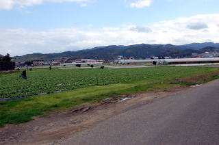 天草下島南端の牛深から路線バスを3本乗り継いで西海岸を北上すると、前方に白い火力発電所が見えてくる。 その向こうにうっすらと浮かぶのは・・・沖合いに浮かぶ島と、そこへつながる平べったい陸地。 右のほうに発電所、その左に伸びているそう、トンボロでございますね! やがてバスは志岐という町に着く。ここは苓北町の中心地で、山ばかりの天草には珍しく2本の川によって沖積された平野が広がっている。 バスはこのままトンボロを渡って陸繋島の付け根にある富岡港まで行くが、砂州の付け根から歩きたいのでここで下車した。 ![]() (左)志岐の町。左端がバス待合所 (右)変わった地蔵堂がある ![]() (左)志岐の平野。地形図では水田だが畑地に転換済み (右)三会川を渡ってトンボロ方面へ 志岐川を渡り、八幡神社などに寄りながらぶらぶら歩いていくと、今度は三会川という川の河口近くを渡る。 地図によるとこの川の河口で平野はいったんくびれ、そこから陸地がトックリ状にふくらんで、その先の細い首の部分がトンボロのようだ。 ちょっとおもしろい形になっているけど、どういうことかな? |