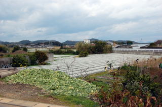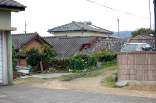 三会川を渡ってトックリ地形に進入した。 前掲の拡大地形図をよく見ると、このトックリ型の南西側には標高15mほどの丘がある。「富岡吉利支丹供養碑」と書かれているあたり。学校マークもある。 この丘は火力発電所のあたりから海岸沿いに連なる微高地のようだ。昔は細長い岬の先端だったのかもしれない。 志岐の平野は、この細長い岬と天草下島との間の海に、川からの土砂が溜まってできたのだろう。 ![]() (左)トックリ地形の北側平野部は畑として利用されている (右)南西側の丘と平野部の間には市街地が続く ![]() (左)富岡教会 (右)富岡港へ続く国道324号線 富岡教会の前で国道324号線に出た。これは陸繋島にある富岡港へ行くための国道で、港で行き止まりになっている。富岡は天草と長崎を結ぶ重要港なのだ。 地図によると、富岡吉利支丹(キリシタン)供養碑はこのあたりだが・・・。 それは国道から少し外れた住宅地の中にあった。 日本史上最大の一揆となった1637年の天草・島原の乱では、討ち死にしたキリシタン一揆軍の首1万あまりを3分割して埋めた。そのうちの一つがこれなんやと。 ![]() (左)富岡吉利支丹供養碑 (右)謎の文字がシンボル 乱のあとこの地は天領となり、供養碑はその初代代官が建てたものらしい。 この下に3000もの首が埋まっているかと思うと、なんともぞっとする。自然に手を合わせてしまう。 供養碑から離れ、住宅地を抜けてトックリ平野を進んだ。 ![]() ![]() トックリ平野部。左の住宅地のさらに左方に丘がある。正面方向の先がトンボロへと続く 上写真の左に見えている住宅地から南西方向、標高15メートルの丘を見たのが下の2枚の写真。 ![]() (左・右)緑に覆われた部分がその丘。上には学校がある この丘が本島部分から続いている以上、ここはまだトンボロとはいえないな。 でも進むにつれて、丘は低くなってくる。 |
