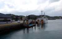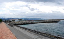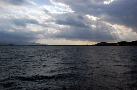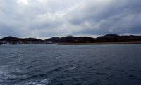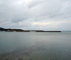 | 富岡神社北側の門から陸繋島の付け根まで、距離にして600mほど。 これがこのトンボロの長さといえる。 ウロウロしながらでも、あっという間に終わってしまう。 トンボロ終点、すなわち陸繋島の付け根に至ると、目の前にいきなり城の石垣が現れた。 案内板によると、これは陸繋島の高台にあった富岡城の大手門跡の石垣らしい。 そしてこの前の道路は、かつての外堀の跡だ。 ということは・・・つまり右下写真のように、かつて城の防衛のためにこの位置でトンボロを掘削して切断し、城のあった陸繋島を離島にしていたというではないか。 ![]() (左)大手門前の石垣 (右)トンボロ切断図。肌色の部分が富岡トンボロ このトンボロ切断工事は、天草・島原の乱の直後、1638年6月から行なわれたっちゅー話。 乱では一揆軍のトンボロからの攻撃に対して無防備に近い状態だったらしい。それを反省してこのように切断し、境目の海岸に石垣を築いてトンボロから攻められないようにした。 案内板には、 「これによって富岡城は天草下島から切り離され、太古に島であった状態になりました」 と書かれている。 富岡トンボロは、天草四郎率いるキリシタン一揆軍の突撃路でもあったのだな。 そのとき幅100mちょっとしかない狭いトンボロ内は、どんなありさまになっていたのだろう。逃げ場のない砂州の中で、ここに住んでいたであろう一般民たちは、いったいどうなったのか。 大手門跡を右へ回り込むと、じきに富岡港だ。 このあたりには立派な家が多い。富岡城下の武家屋敷だったのかもしれない。 ![]() (左)大手門東側、港へ通じる道沿いの家々 (右)港の駐車場から、富岡城跡が見える ちょうど長崎の茂木港行きのフェリーが出る時刻が近づいている。 でも俺にはもうひとつ行きたいところがあった。右上写真の富岡城跡に立つビジターセンターだ。この陸繋島は標高が低いためトンボロ地形を高いところから鳥瞰するのは難しいが、それでもこのビジターセンターからはトンボロ特有の美しい景色がある程度は見えるらしいのね。 しかしそのときにわかに空が掻き曇り、雨が降り始めた。しかし俺は傘を持っていない。傘なしでビジターセンターを往復するにはちょっと厳しい降り方だ。 そしてフェリー出航の時刻は迫っている。これを逃すと次は3時間後。傘なしで3時間はツライのではないか。それに次の船だと日はとっぷり暮れて真っ暗で景色を楽しむこともでけへんぞ。でもせっかくこんなとことまで来たんだし・・・。 くよくよ迷っている間に汽笛が鳴る。あーもう、ビジターセンターから景色を眺めるのは次回のお楽しみだっ! 俺は雨に負けて船に乗った。軟弱だ。 船に乗ったとたん、雨がやんだ。いつものことね。とほ〜〜。 船からは、いま歩いてきたトンボロがこんなふうに見えた。 ![]() ![]() 左のほうが志岐、松林はトンボロ東岸 ところで、冒頭の地形図に戻っていただくと、富岡港の東側をぐるっと守っている砂嘴がある。こいつも気になるじゃないか。 船から観察した。 ![]() 右に延びるのが砂嘴![]() 先端部拡大そんなわけで、俺は近いうちにまた富岡を訪れることになるだろう。それもまたよし、だ。 おしまい。 (2010.12.10) |
