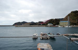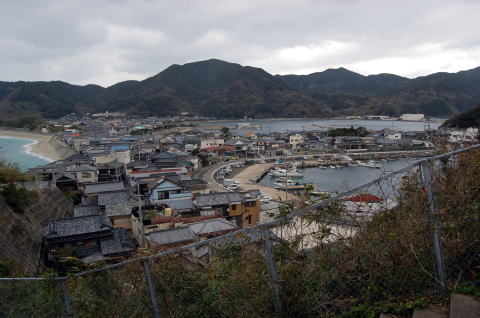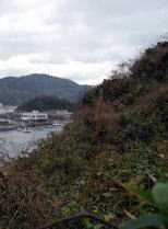 | ちゅーわけで正月開けの6日だよ、このクソ寒いのにこんなとこで俺様なにやってんの? と一人ニヤつきながら長崎からバスに乗って約1時間、まずは何を思ってか長崎半島先端の野母崎に行き、強風の中を権現山に登ってヘトヘトになってから樺島行きバスに乗って脇岬へ。 野母崎から脇岬へは2kmほどなので、すぐに着いてしまう。 僻地のバス路線はどこもそうだが、このバスも乗客はほとんどいない。脇岬バス停で降りたのはもちろん俺一人。 いきなり目の前が漁港だった。 このトンボロは東シナ海と天草灘を分けており、港は東側の天草灘側にある。このささやかな砂州が西からの波浪を防いでくれているのね。 先の地図でいうと中央の赤印がバス停で、右へ突出した弁天山トンボロの付け根にあたる。 ![]() (左)バス停前の漁港、背後の山は長崎半島 (右)漁協(右ビル)とごまどうふ屋(左の茶色い建物) バス停の少し先、樺島へ続く道路の正面に小高い丘がある。これが弁天山だな(右上写真の左隅に見える森のあたり)。 道はその手前で右へU字にカーブし、祇園山方面へ向かう。その曲がったところに漁協などがある。 漁協の脇に再び漁港が現れる。これは弁天山トンボロの南側、祇園山との間にある湾だ。 左端の漁協の背後に弁天山が見えるようするにこの漁港は弁天山トンボロによって南北に分かれているわけね。そしてT字の結節点に漁協があるということは、ここが漁業集落としての脇岬の中心点でもあるわけか。 右を見ると、祇園山と、その先に赤い橋でつながる中島が一望できる。 ![]() ![]() 中央が祇園山、左の赤い橋の先が中島 |