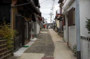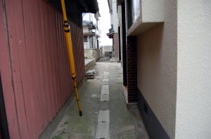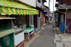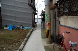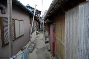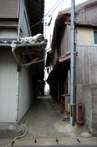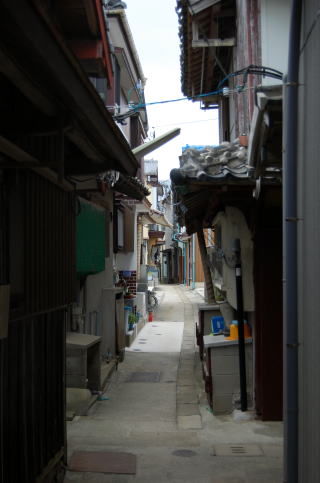 トンボロの集落内に足を踏み入れてみよう。 でもここは祇園山へのトンボロ本線と弁天山トンボロが合体しているから、普通のトンボロのように1本か2本の道が平行に走っているわけではなくて、ちょっとややこしい。 今これを書いているのは実際に行ったときから1年半以上も経過しているので、どの写真がどこなのか定かではないのよごめんちゃい。 ![]() (左)これはたぶん弁天山トンボロ中央へ伸びる道かな? (右)これはY字結節点のあたり。たぶん 家々の隙間から西岸が見える ![]() (左)これはたぶん祇園山へ続くトンボロ本線 (右)これも これぞトンボロ!と言いたくなるような細い道を挟んで、民家がびっしりと立ち並んでいる。自動車のことなどもとより眼中になく、船さえあればOK!なのね。 しかもここは過去の小さなトンボロと比べると、営業している商店などがけっこうあって、それなりの規模の「まち」として生きている様子がうかがえる。 もしかしたら、日本3大トンボロ以外のトンボロの町としては有数のものではないか。 民家の隙間から西岸に出てみよう。 昔ながらのエエ路地や![]() ![]() トンボロ西岸から野母崎の眺め これから向かう祇園山方面こちら側は東岸とは打って変わって、堤防と砂浜のほかは何もない。東シナ海を渡ってきた波風が直接打ち付ける厳しい浜辺だ。 本土側のトンボロ付け根のあたりは海水浴場になっているらしい。 |