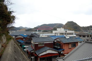 祇園山から下りて、弁天山のほうにも行ってみた。 ![]() (左)Y字結節点あたりのシビレル路地、これでも表通り (右)弁天山へは上り坂 弁天山へつながるトンボロは中ほどが盛り上がっている。島だった名残だろう。 路地を抜けたところに突然小高い丘が現れ、鳥居が立っている。 ふいに現れる鳥居と丘その上には弁天社があったが、山頂までの道はやはりない。下の写真が限界だった。 ![]() ![]() 祇園山と中島への赤い橋が見えるが、残念ながらトンボロの形は見渡せず いつも思うことだが、トンボロファンの気持ちがわかってないね。祇園山も弁天山も山頂まで道をつけて展望台を作ってくれたら、全国のトンボロファンがその景観を眺めにやってくるはずなのに。 というのも、俺はじつを言うとこの春(脇岬を訪れてから1年あまり後)、日本最大のトンボロである函館へ行って来た。そこには世界中からトンボロファンがこんな具合に押し寄せていたのだね。 ザ・函館トンボロいかがです。これに比べれば脇岬はミニサイズではあるが、景観の見所としては基本的には同じだ。祇園山に山頂展望台を作ったら、きっとこれに似た景色が見られるだろう。いや、脇岬はY字トンボロだから、よりユニークな眺めに違いない。 ここでもう一度、函館の写真と本レポートの冒頭写真とを見比べていただきたい。もっと上から見えたなら・・・という俺の歯ぎしりがわかっていただけるでしょう? 上の写真に写っている人たちはおそらく自分がトンボロファンであることを自覚していないと思われるが、俺から言わせれば、このバチ状景観を見たい人はみな潜在的トンボロファンなのだ。 函館山は年がら年中、こんなふうに潜在的トンボロファンが押しかけている。こいつらのうち100人に一人でも脇岬に来たら、脇岬の住民はそいつら相手にタコヤキ焼くだけで笑いが止まらんくらい儲かるぞ。 問題は、こんなことを言ってるのが日本で俺一人しかいないということね。残念だ。 帰りのバスの時間がきた。 脇岬バス停はどっちかというとトンボロの中心より先端に近い位置にある。だからここから九州本土の付け根までまだずっとトンボロの町は続いているのだが、もう時間がなくなってしまった。 ![]() (左)九州本土方面へ続くトンボロの町 (右)バス停前の商店 それにしても正月の東シナ海の風は冷たかったし、ちょっとさみしかった。今度はもっと暖かい季節に来よう。 (記:2011.8.2) |