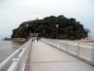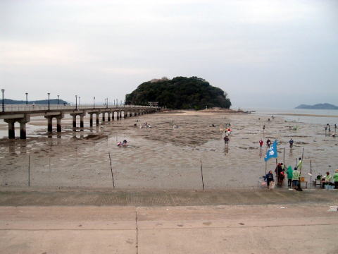余った青春18きっぷで、まあ何となく行ったことのないところへ行こうかなと思って、ガマゴーリというところへ行ってみた。ここにはちょっと変な島があるらしいし。 降り立った蒲郡駅はさすが儲かってるJR東海ぃ〜と思わせる高架カプセル状の近代的な駅舎だった。 でもそのわりに駅前は閑散としている。 蒲郡駅しかも今にも降りそうな怪しい雲行きだ。 変な島は竹島という。日本海でモメてる島と同じ名前だが、ガマゴーリの竹島は屁が出るくらいに平和な島だということで安心だ。 線路沿いを歩いて南へ渡り、三河湾のほうへ20分くらい歩いていくと、竹島水族館という平和まるだしの施設があった。せっかくだから入ろうか。受付でお金を払おうとしたら、おばちゃんが「今日は中で小学生の写生大会をやってるので、特別に入場無料です」とおっしゃる。 ラッキーだ。さっそく中に入ったが、そこらじゅうに写生中の小学生がたむろしていて、ま、ゆっくり見てられない。15分くらいで早々に退出した。 ![]() (左)竹島水族館 (右)昔ながらの水族館で小学生の写生大会 水族館の前を左方向へ数分歩いて行くと、問題の竹島が見えてきた。こんもりモコモコと照葉樹が繁った小島で、周囲に干潟が広がっているが、これは干潮の時だけトンボロ現象で陸地とつながるパターンかな。 竹島には神社があって、そこへ行くための橋がかかっている。湘南の江ノ島と同じだな。 ![]() (左)竹島への橋 (右)潮干狩りをする人たちがたくさんいた 400mほどの橋を渡っていくと、橋をまたいで鳥居がある。上陸するとすぐ八百富神社というのの参道が始まった。 周囲の森は照葉樹の極相林で、国の天然記念物に指定されているんだと。竹島という名だが竹は生えていない。 ![]() (左)竹島の鳥居が近づいてきた (右)八百富神社の階段 ![]() (左)八百富神社の拝殿 (右)照葉樹ぼーぼー この神社は琵琶湖の竹生島から勧請したもので、祭神はもちろん市杵島姫だ。そうか、竹生島とのつながりで竹島なんだな。 いずれにせよ江ノ島や厳島と同様、海人族系の宗像女神を祀っている。こういう島はだいたいそうだ。古代の日本の海岸線は関東までほぼ宗像信仰の海人族勢力が掌握していたらしい。 神社をひとまわりして島の南端の海岸に降り立った。江ノ島よりも小さそう。 正面に三河大島が見えるそこから岩礁伝いに島をぐるっと半周して元の鳥居に戻った。じつを言うと三河湾は初めてなので、薄黄色に濁った水が新鮮だ。変化に富んだ岩場もなかなかおもしろい。 でも歩いているうちに雨が降ってきたぞ。 ![]() ![]() 遠くに見えるのは西浦崎 橋の近くに戻ってきた。対岸は蒲郡本土来たときよりも少し潮が満ちてきているような感じだ。 再び橋を渡って本土に戻ると、竹島に向き合う神社があった。そこでちょっと雨宿り。 神社の中から竹島を見る腹が減ったが、あまり食堂がない。1軒だけ、昭和30年代チックな食堂が開いていたので、そこで昭和30年代チックなラーメンを食った。 やや小降りになったようなので店を出て海岸沿いを東へ歩き始めたが、また降ってきた。傘もないけど、周囲にはコンビニなんかあるわけない。なんもない。仕方がないので歩き続けた。 20分ほどで港が現れた。三谷というところらしい。ここから内陸に向かい、JRの線路を越えて大きな道路に出たあたりに日乃出湯という銭湯があった。でもまだ開いていなかった。 ![]() (左)三谷の漁港 (右)日乃出湯 雨は止んだかと思うとまたしとしと降り始める、うっとおしい状態。 その中を傘もないまま30分近く歩いて蒲郡の中心部へ戻り、ついでに周辺の銭湯を2〜3軒見て回ったけど、イマイチそそられる激渋系は見当たらなかった。飲み屋もまだ開いてないしなあ。ていうか、アーケードの下にもあんまり歩いている人がおらんぞ。 中途半端な雨に、中途半端な時間。こういう天気だとさすがのまっちゃんもちょっと萎える。 雨しとしとの蒲郡の中心街なんとなくめんどくさくなったので、駅に戻って電車で豊橋に移動し、そこで風呂に入って飯を食って酒を飲んだ。 というような、イマイチさえない蒲郡の一日であった。まあこんな日もあるでしょう。 おしまい。 (記:09.4.10) |