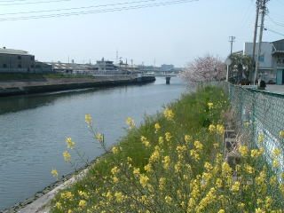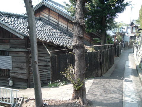 碧南の新川からてくてく歩いて、高浜川を越えた。もう高浜市だ。 このへんにも1軒銭湯があるはず・・・と、これか? ![]() (左)高浜川を渡る。むこうは全部瓦工場 (右)松の湯・・・廃業した工務店の事務所かなんかふう 少し進むと、幹線道路から右に逸れて小さな丘を登っていく道があるので、そこを登ってみた。地図によると碧海町3丁目。 落ち着いたまちなみをしばらくいくと神社があった。 ![]() (左)幹線道路から逸れて碧海町の路地へ (右)神社の階段を登る ![]() (左)神明社、こういう建物がいくつかあった (右)神明社の裏の公園ではお花見の最中 ![]() (左)神明社の北側、じつにいい感じ (右)板塀の路地を下りてゆく 狭いエリアだが、なかなかいい雰囲気の町じゃないの(冒頭写真もこのあたり)。桜を眺めながらのんびり休憩だ。この季節はどうしても休憩が多くなる。 考えたら、冬の間は立ち止まると寒いからまったく休憩なんかしない。桜の開花にあわせて休憩もはじまるのね。 そのまま住宅地の狭い道を歩いて行くと小さな公園があり、瓦製のへんなオブジェが並んでいた。 その少し先に瓦ミュージアムという建物が現れた。 ![]() (左)瓦でできた変な物体 (右)瓦ミュージアム せっかくだから入ってみた。入館料はいくらか忘れたが、たぶん安かった。お客は俺以外に1人くらいしかいなかった。 ここにはもちろん瓦ばかりが展示してある。そして俺はべつに瓦に特別興味があるわけではない。 が、寺院の屋根瓦の蓮華紋の変化を古墳時代から時系列に展示してあるコーナーでは思わずクギヅケになった。シルクロードの紋様がいかに日本の寺に取り入れられ変化してきたかが一目瞭然だ。 ![]() (左)東大寺大仏殿から出土した瓦 (右)これは法隆寺、原初的な蓮華紋 思わぬ興奮を覚えて写真撮りまくり、けっこう長居した。でも最後まで俺以外にお客の姿はなかった。 ![]() (左)瓦ミュージアムの前にある巨大シャチホコ (右)ミュージアムの西には衣浦大橋がある 高浜旧市街の中心部はもう少し北の春日というあたりのようだ。 でもミュージアムのすぐ横に衣浦大橋があり、そこから衣浦湾を眺めようと橋に足を踏み入れたら、そのまま対岸まで渡ってしまった。 瓦ミュージアムで得た知識によると、高浜はかつて三州瓦の積出港として繁栄した港町だったそうな。 ![]() (左)衣浦大橋から南の眺め。左側が高浜〜碧南 (右)北の眺め。このまま北上すると境川に入る さっきまで青空だったのに、なんだか空がどんよりと曇ってきた。 橋を渡ると亀崎(半田市)だ。 この狭い海はかつて三河と尾張の国境であり、南の太平洋から伊勢湾→三河湾→知多湾→衣浦湾と入り込んだ海の最奥部分にあたる。奥深いがゆえに静かな水面が、三州瓦の水運と積み出し港としての高浜の繁栄をもたらしたのね。 ずいぶん大昔からこの高浜・碧南など三河南西部一帯は碧海郡(あおみのこおり→へきかいぐん)と呼ばれていたようだ。その昔はさぞや水が青く美しかったことでせう。 しかし周囲が工業地帯となった現在、湾奥は海水の出入りも少ないこともあって、ひどく濁っている。 橋を渡って亀崎側から振り返るゆっくりと橋を渡るうちに、天候はみるみる崩れてきた。 橋を渡ると尾張の国だ。高浜の旅もここでオワリ。 (記:09.4.13) |