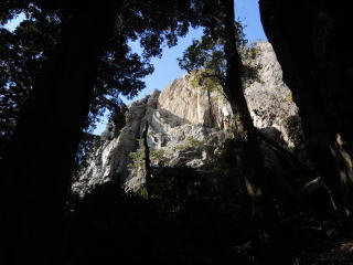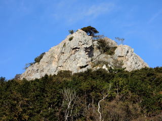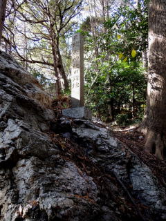 新幹線の大阪〜東京間に乗る場合、普通は座席指定の窓口で「富士山側を」と希望しますよね? 日本人である以上、当然の選択でしょう。 で富士山が見えてくるまでは仕方がないので、キオスクで買った週刊文春をめくり、あらかた読んだあたりでウトウトと居眠りへと移行する。 大阪から乗った場合、おそらくは名古屋を過ぎて豊橋あたりでそうなるはずです。 そこ! そこで居眠りへ移行せずに、もうちょい浜名湖の手前まで辛抱しましょうね。 下左地図の赤い印のところで、窓の外を見てみたら・・・。 ![]() (左)愛知県から静岡県へ入る寸前 (右)なんじゃありゃぁ〜? というわけで前から気になって仕方がなかったこの山。山というには小さいけど、岩がむき出しになって白く輝いているあいつは何なんだ。 南アルプスから続く山並みが海へ没する前の、最後のひと吠えといった小さな勢いを感じる。台湾の墾丁の大尖山を彷彿とさせやがるぜ。 正体を知るべくネットで調べてもイマイチわからん。国土地理院の地形図を見ても、名前も三角点も載っていない。ともかく行くしかないな・・・。 で、なぜか2013年の新年元旦。今年一年の運勢をこのふしぎ山で計ることにした。 ![]() (左)新所原駅の橋上通路から (右)神社の鳥居が見える。山頂の木が素敵 新所原駅は静岡県側にあるが、地図で見るとこの山はぎりぎり愛知県に属している。 駅を出て、幹線道路を愛知県側へ戻っていくと、すぐに県境の標識がある。そのまま歩くとやがてこの山が見えてくる。正面は絶壁だが後頭部(北面)からは登れそうだ。 途中にはコンビニもあって便利ね。 駅から1kmちょっとくらいで、真正面に来た。そこには小さなドライブインがあるが、その看板を見たら、「喫茶・食事 立岩」だとう!?・・・ということは、この山の名前は立岩か! そのへんの人をつかまえて名前を教えてもらおうと思っていたのだが、もう立岩で間違いないなこれは。 ![]() (左)喫茶・食事「立岩」だとぉ〜。ターゲットの名前判明! (右)美しいではないか 店の背後にまわると、山へまっすぐ向かっていく道がある。行ってみたけど、みかん畑で行き止まり。 右上はそこからの写真。青空に白い岩がじつに美しい。 正面の右側に神社の鳥居が見えていたので、今度はそっち側をさぐってみる。 ![]() (左)キャベツの国からこんにちは (右)神社から攻める 神社の手前に、下左のような看板があった。なるほど、ここはロッククライミングの練習場に使われてきたんだな。でも俺はべつに岩登りをしに来たんじゃないもんねー。 その横には小さな公園がある。 ![]() (左)岩登りの事故で自治体の責任を問うやつなどおらん (右)そしてこの脱力っぷり 神社は赤い屋根の稲荷社だが、右側から奥へと参道が続いていて、奥宮がある。 こういった顕著な岩山は、日本では必ず神体山として信仰対象になっている。でもお正月だというのに、ここは特別に祭られている様子がない。地元の信仰対象としてはあまり求心力を持たなくなっているのかな? 奥宮の右側から背後へ回り込んでいくと、すぐに岩場が現れた。 ![]() (左)奥宮 (右)その背後の岩場、「天地天神社旧跡地」とある 森を少しかき分けたら、まもなく立岩の岩壁が目の前にそびえてきたぞ。にわかに急傾斜となるが、岩の下部にテラス状のところがあり、そこまでは素手でも簡単に登れた。 そこからはロッククライミングの領域となるが、右のほうの大きなクラックに真新しい鎖が見えるではないか。岩もしっかりしていて、慎重にいけば素手でも登れないことはないように見える。 ![]() (左)いきなり来たぞ! (右)クラックに真新しい鎖が見える だが元日からいきなり無理することもないか。もし落ちたら近所の人にえらい迷惑をかけてしまうことになるし。 岩場を降り、岩の根に沿って右側から背後へまわることにする。 平坦な森を抜けて岩塊の北側へ出ると、畑地の柵に阻まれる。そのへんから登れなくもなさそうだが、けっこうヤブが茂っている。もう少しラクなルートを探そう。 休耕地っぽい段々畑を登って、立岩から北へ続く緩い尾根筋に出たところに踏み跡発見。なーんだ、反対側からアプローチルートがついていたのか。 ![]() (左)ルート発見 (右)森を抜けて露岩へ出た 踏み跡をたどって斜面を登るとやがて森が終わり、岩場に行き当たる。入山しないでください、と立て看板があるわりにはけっこう登られているようで、岩場も難なく上がっていける。 と、目の前に洞窟が現れて一瞬ギョッとさせられる。「防空壕に入らないでください」だと? ![]() (左)防空壕あと、2ヵ所ある (右)キタ━(゚∀゚)━! 防空壕跡のすぐ上が頂上だった。そのとたん、惜しみなく広がる大展望! ![]() 180度パノラマでは足りませぬ ![]() (左)ひょえ〜〜 (右)下から見えていた孤高の木は松の木かと思っていたけど、樫の木だった いやはや、お正月! 最高! ちょっと海まで距離があるけど、ずーっと広がるペッタンコはみな太平洋よね。 眼下に