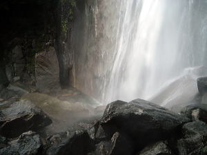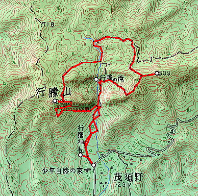 「オス山とメス山があって、その間からジャーッと滝が流れているらしい」 協調性ゼロ太平洋一人ぼっち主義の俺の数少ない山仲間の一人、マッキー(20代前半♀)は、俺のこの言葉に何を想像したのか異様な関心を示し、ぜひとも同行したいと言う。 彼女は俺のモッチョム絶叫レポートに感動して屋久島に渡り、モッチョム単独登頂に成功した強者だ。山頂で何と叫んだのかはあえて聞いていないし聞きたくもない。 ようするに嫁入り前の娘のくせに俺に劣らぬ変態だ。 かくして今回はよくわからない2人パーティーでこの奇妙な山に挑むことになった。 しかし残念なことに、九州東部の天気は前日から崩れていた。当日の朝6:30に延岡駅前からバスに乗るときも、山々は厚い雲に覆われていた。 空模様をうかがう俺の後部座席で、マッキーが早くも居眠りをしている。なんでも前日コンビニでエロ本を買い、延岡ビジネスホテルの自室で遅くまで起きていたらしい。 「いや、勉強しとかないとと思って・・・」 何を考えているのかまったくわからないし、わかりたくもない。 ところがバスが国道から離れて山に近づくと、ふいに前方の雲が切れた。その瞬間、山すそに雲をまとわりつかせながら、行縢山がそのいかつい全貌を現した。 雄岳・雌岳ともに、天の剣で叩き斬られたかのごとくにまっ平らな断崖絶壁で全身を荒々しく固めている。そして両者の間からは・・・あれか! 見事に滝が落ちているぞ。 なんちゅー独特の姿、しかも聞きしに勝る豪快さだ。お前はヨセミテか(行ったことないけど)。 このときに車窓から全体写真を撮っておくべきだった、とあとで後悔した。 ちなみに行縢と書いて「ムカバキ」と読むこの奇妙な山名は、ヤマトタケルが命名したという。ムカバキとは、武士が乗馬時に両フトモモに装着する皮製防具を意味するらしい。クマソ征伐に来たヤマトタケルはこの地でカワカミタケルを討ったと伝えられる。 それにしてもこの雄岳・雌岳が両フトモモに見えたとすると、やはり真ん中の滝は・・・どうやらヤマトタケルの発想もマッキーとどっこいどっこいらしい。 小さな集落を抜け、バスは延岡駅前から20分ほどで終点の行縢山登山口に着いた。 正面に行縢神社がある。登山道はその右手に延びているが、まずは神様に挨拶だ。イザナミなどが祀られているが、もとは行縢山がご神体だったに違いない。 ![]() (左)行縢神社参道、登山道は鳥居右の注連縄のある岩の右側 (右)拝殿 ![]() (左)拝殿手前の狛犬・・・ってこれ何の動物や! (右)サルか? ロバか? 東国原か? 朝っぱらからマッキーがおみくじを引くというので俺も引いた。大吉だ。天気の回復を祈ろう。 7:10に行縢神社を出発して、杉木立の中の登山道を進む。まもなく木の吊橋を渡った。 吊橋の手すりに生えていたキノコ橋を渡ると道は岩がちになった。森の中に風はまったく吹かず、垂れ込めた雲の湿気と汗でスチームサウナのがまん大会状態だ。 突然、バーンと雌岳の岩壁が目の前に登場した。いやこりゃすごいわ。左方向には雄岳の岩壁も聳え立つ。 ![]() (左)雌岳の岩壁 (右)こっちは雄岳 雄岳のほうが20mほど高く、山頂からの展望もいいため、ふつう行縢山に登るというと雄岳登頂を意味するようだ。行縢の滝を東側から迂回し、山の裏側(北東)から登るのが一般コースらしい。 だが一般コースで満足するようでは、ふしぎ山探検家とはいえない。 地図には載っていないが、雄岳の岩壁の真下を西に向かって端から端までへづって正面から攻める「南面ルート」というのがあるらしい。別名、ガケ下コース。やはりこれだろう。そしてもちろんオスに登ったらメスにも登頂せねばなるまい。 で、この地点でフト左の沢を覗くと、沢の向こう岸に赤テープの目印がいくつか見える。どうやら南面ルートの入口っぽいぞ。 石を飛んで沢を渡渉し、踏みあとを少し登るや、まもなくガケ下に出た。見上げれば、恐ろしい絶壁が天空はるかにそそり立つ。間違いない、これが南面ルートだ。 ![]() (左)ガケ下に出た (右)雄岳の絶壁がずーっと上まで垂直に続いている 踏み跡には赤テープがたくさんついていて、迷うようなことはない。右手で壁をさわれるような距離をずっと保ちながら、巨石や倒木を縫って登ってゆく。 けっこうな激登り、しかも相変わらずのスチームサウナ状態だ。岩を伝い落ちる水をすくってゴクゴク飲みながらひたすら登る。 ![]() (左)岩を伝って上から水が落ちてくる (右)流れ落ちる水と、イワタバコの花 半月前の大型台風のせいか倒木が多く歩きづらいが、そこそこ人が登っているらしく踏み跡は明確だ。ルートを見失いそうになる崩壊地もあるが、あくまでガケ下方向に赤テープを丹念に探せば進むべき道は見つかる。 そうこうするうちに、ガスが濃くなって、完全に雲の中に入った。 それにしても、もうたいがい登ったぞ。そろそろ頂上も近いだろう、と思ったときに一瞬雲が切れた。そこで見上げてみたら・・・エェ